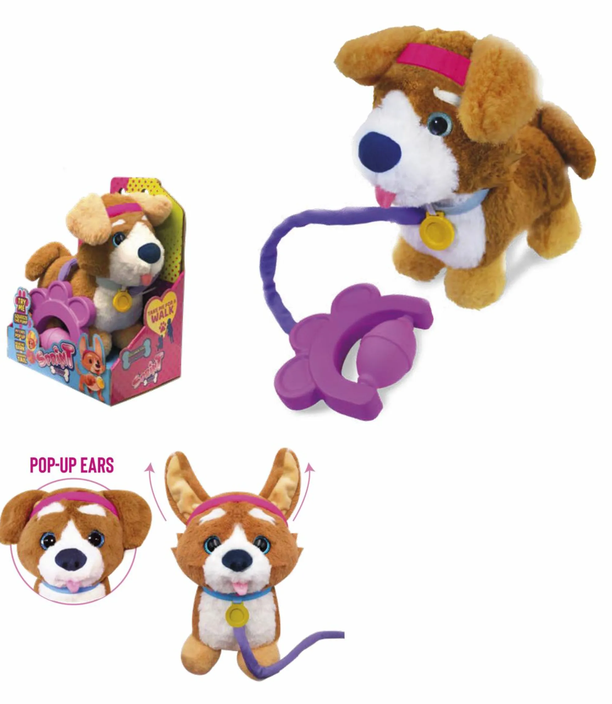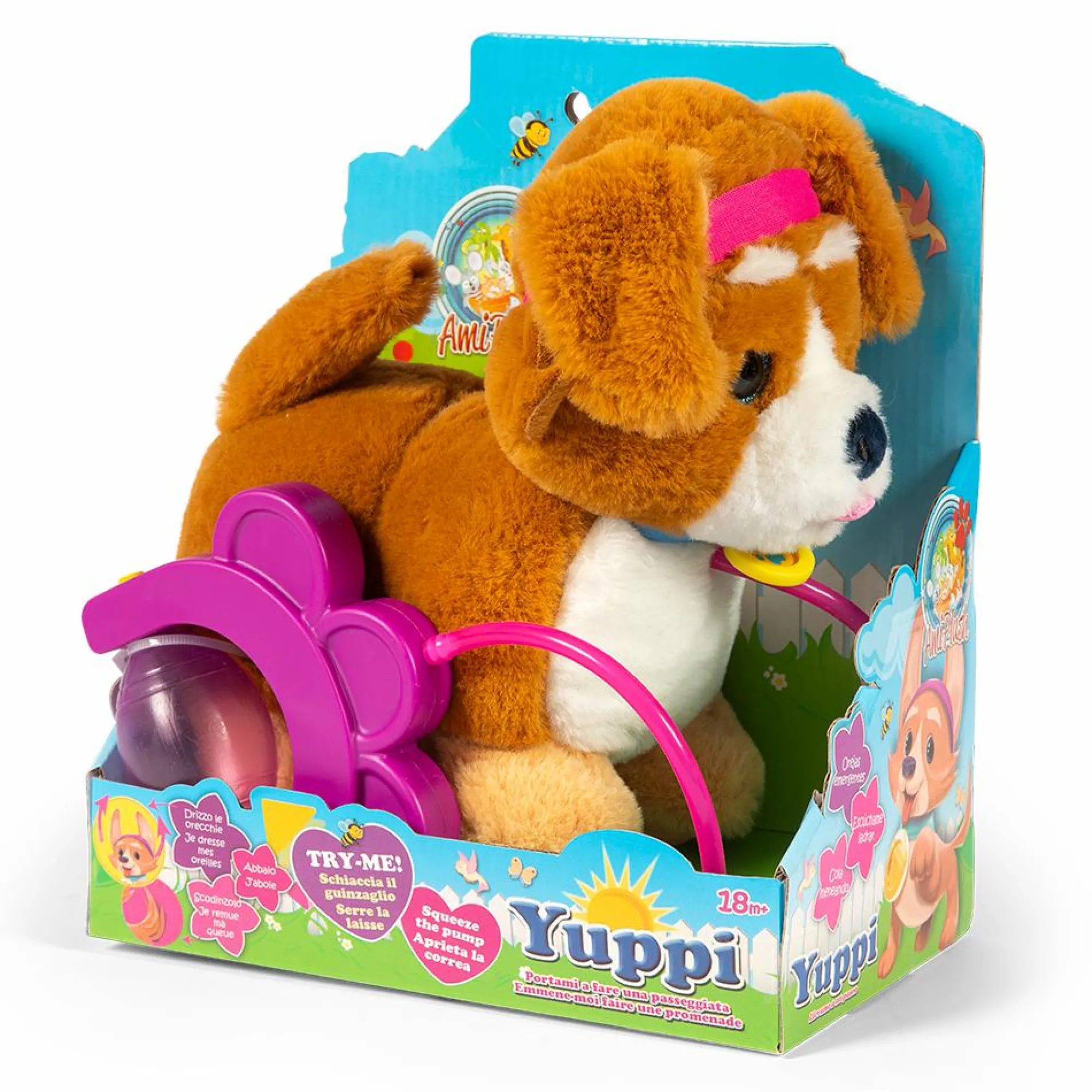 Drizza le orecchie, abbaia e scodinzola.
