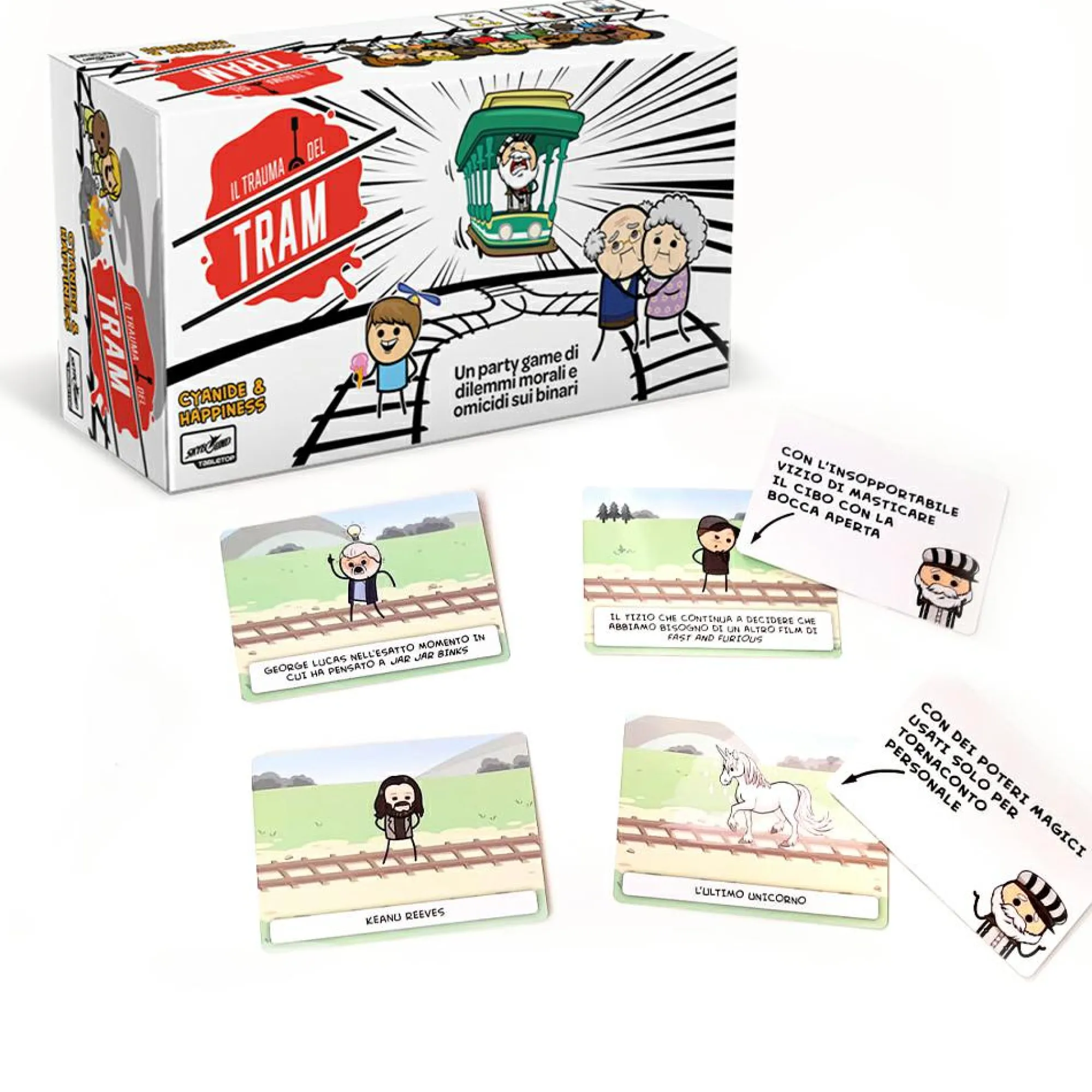 AvvertenzeAvvertenza. Questo non è un giocattolo. Descrizione Un party game di dilemmi morali e omicidi sui binari.