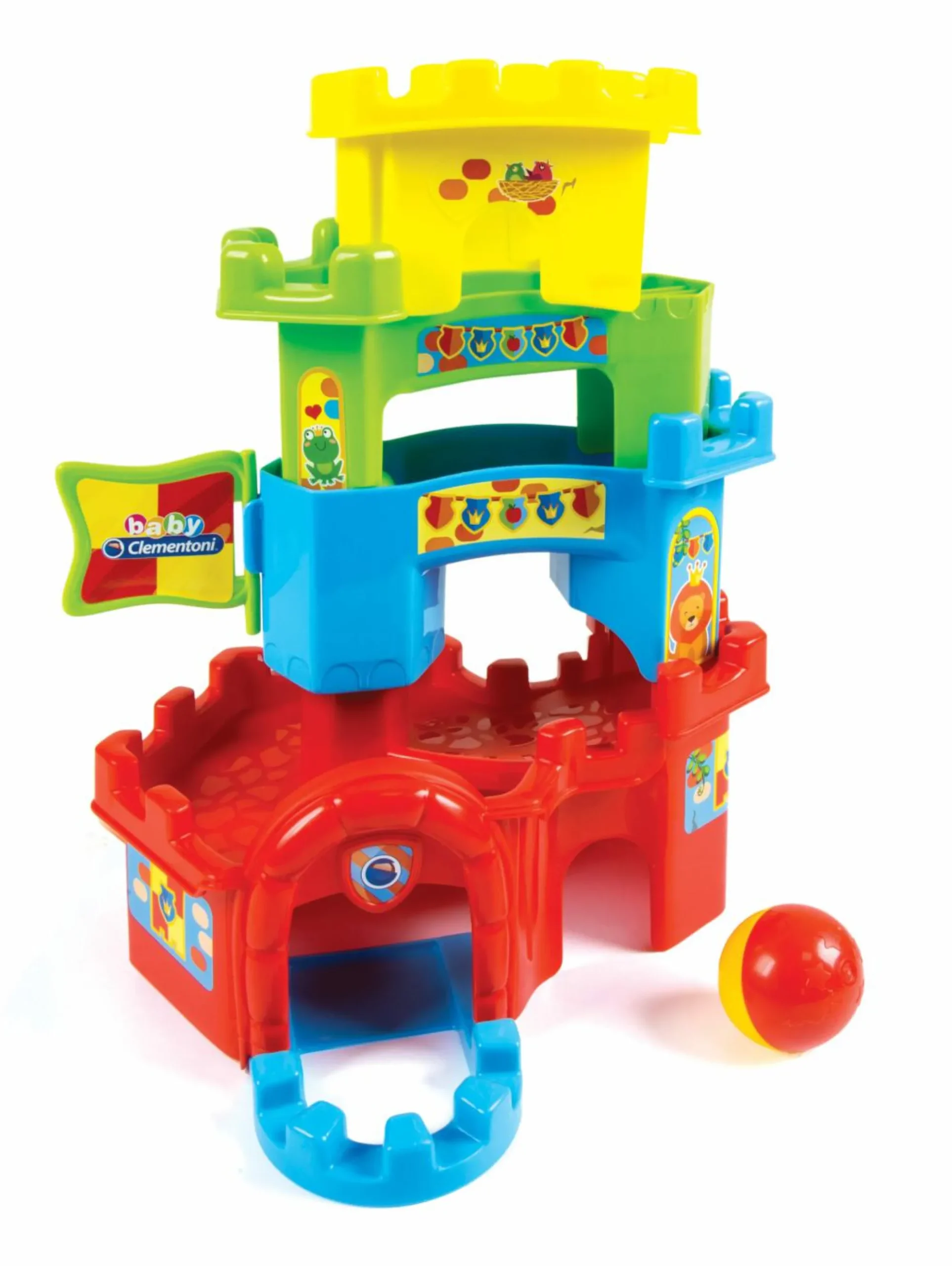 Il bambino potrà giocare a far rotolare la pallina lungo il percorso all’interno del castello e lungo le mura: inserendo la pallina in cima alla torre questa cadrà giù lungo i diversi livelli, fermandosi all’interno del “cortile” davanti all’ingresso.