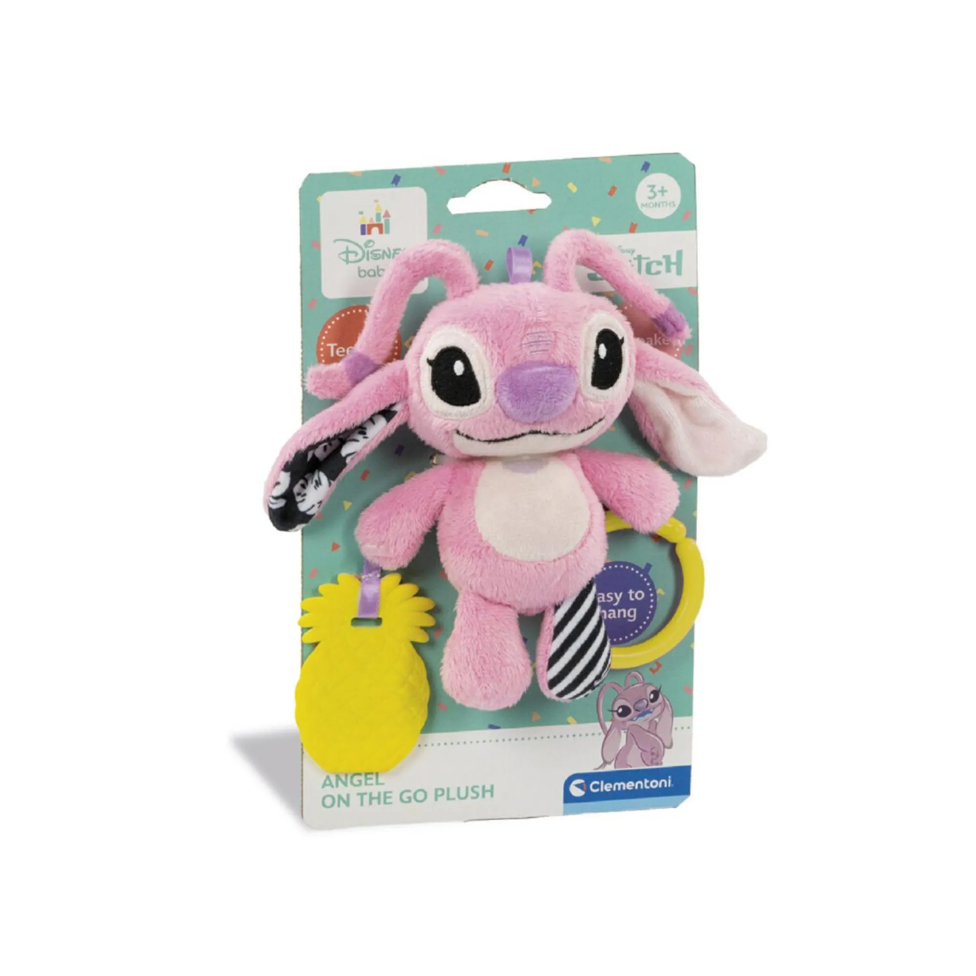 Con il pratico anello Angel è appendibile al passeggino, alla culla o ovunque si voglia, per portarla sempre con sé