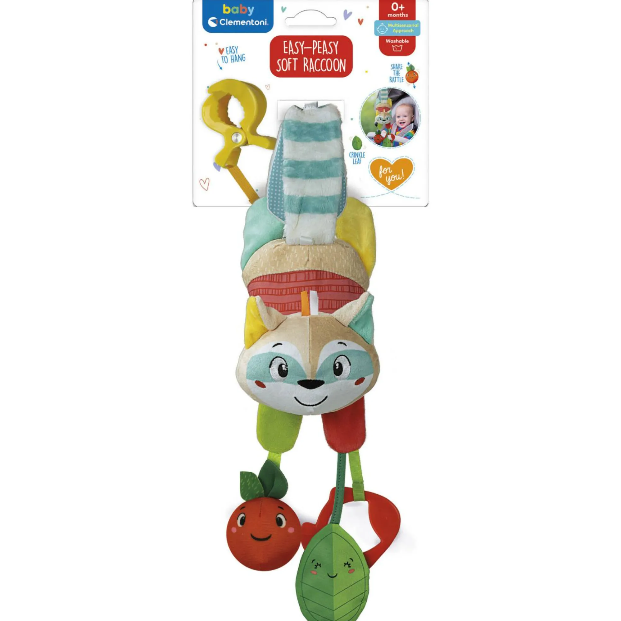 Un personaggio tutto da accarezzare, ricco di attività e con una pratica pinza per appenderlo ovunque si voglia.