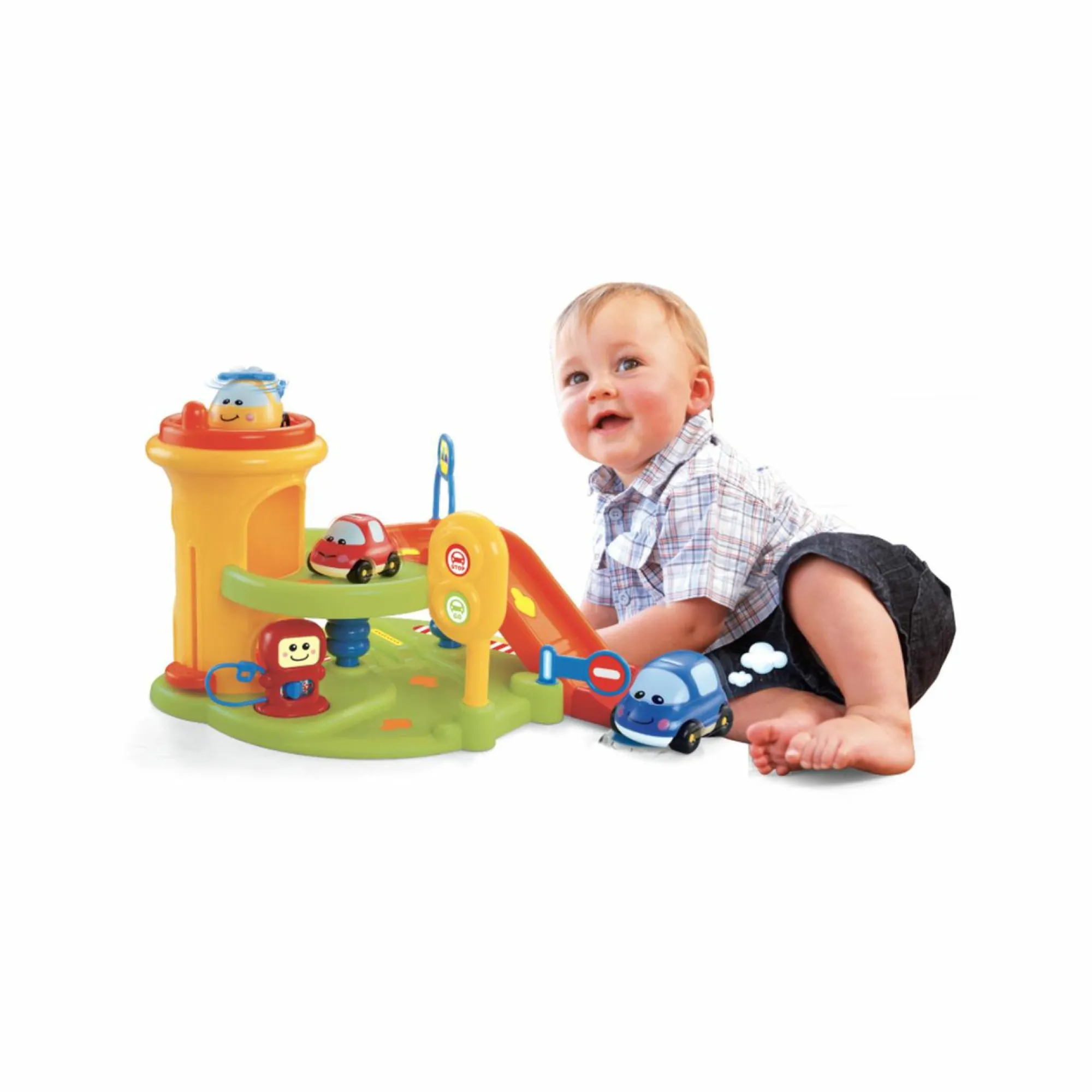 Con ascensore funzionante, sbarra mobile e rampa per lasciar sfrecciare le macchinine!