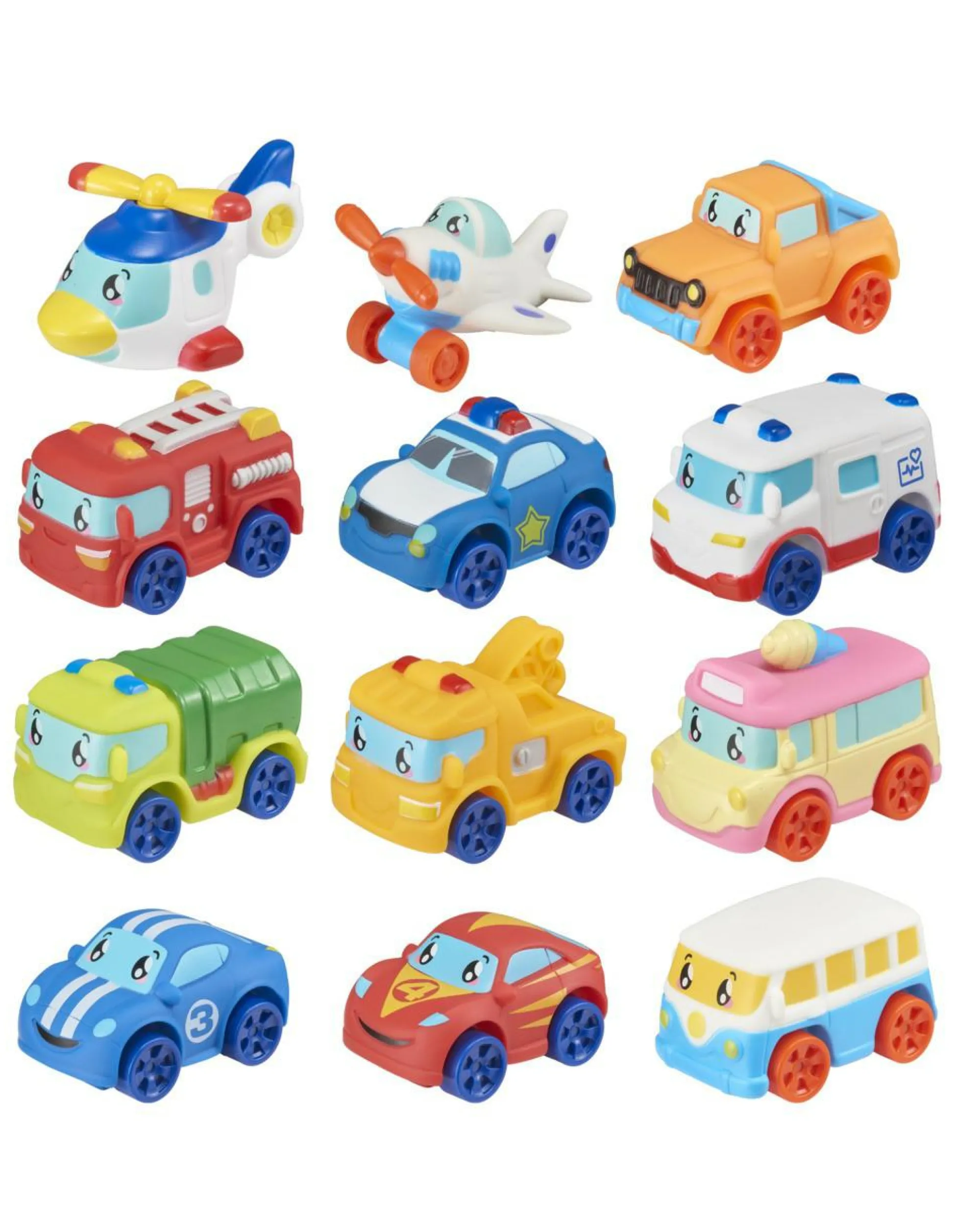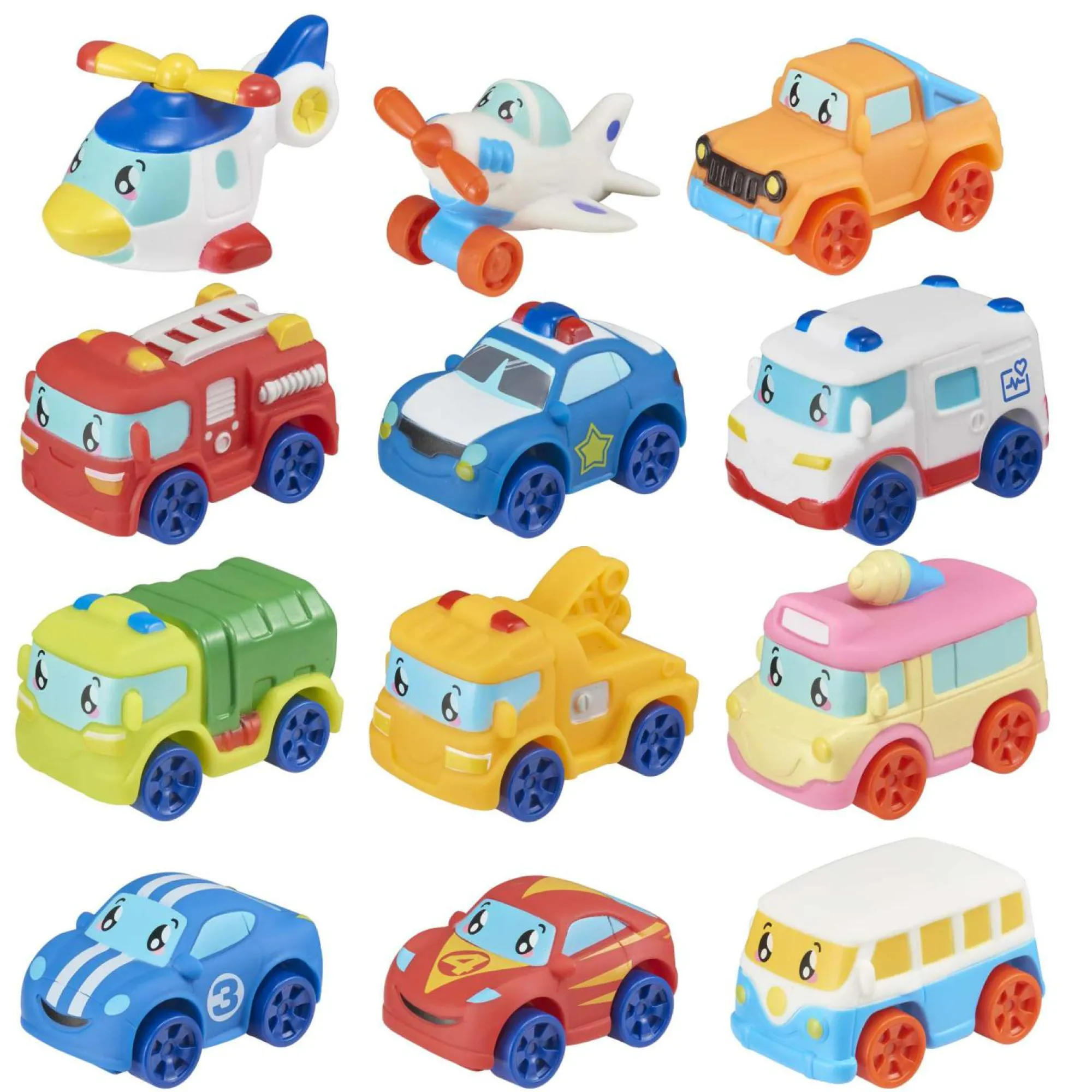 Miniature in gomma di tanti veicoli. Realizzati in materiale morbido e sicuro, adatto ai bambini che mettono sempre tutto in bocca!