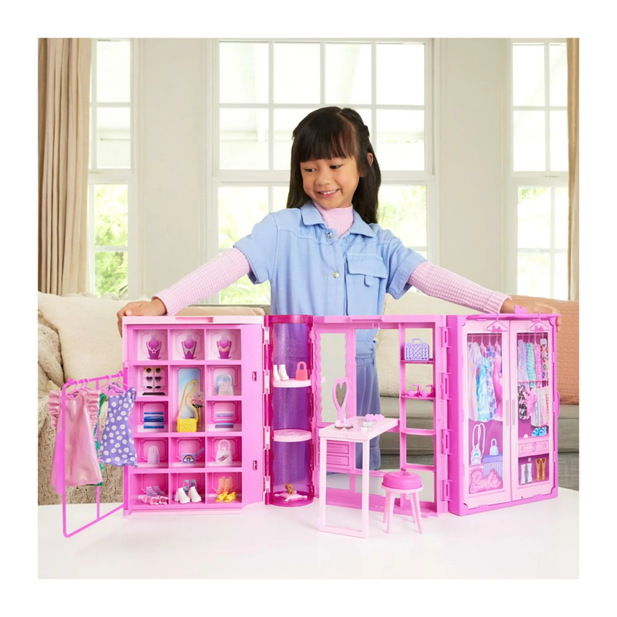 I bambini possono aprire l’Armadio dei Sogni di Barbie e lasciare che la loro immaginazione crei storie e stili infiniti per Barbie!