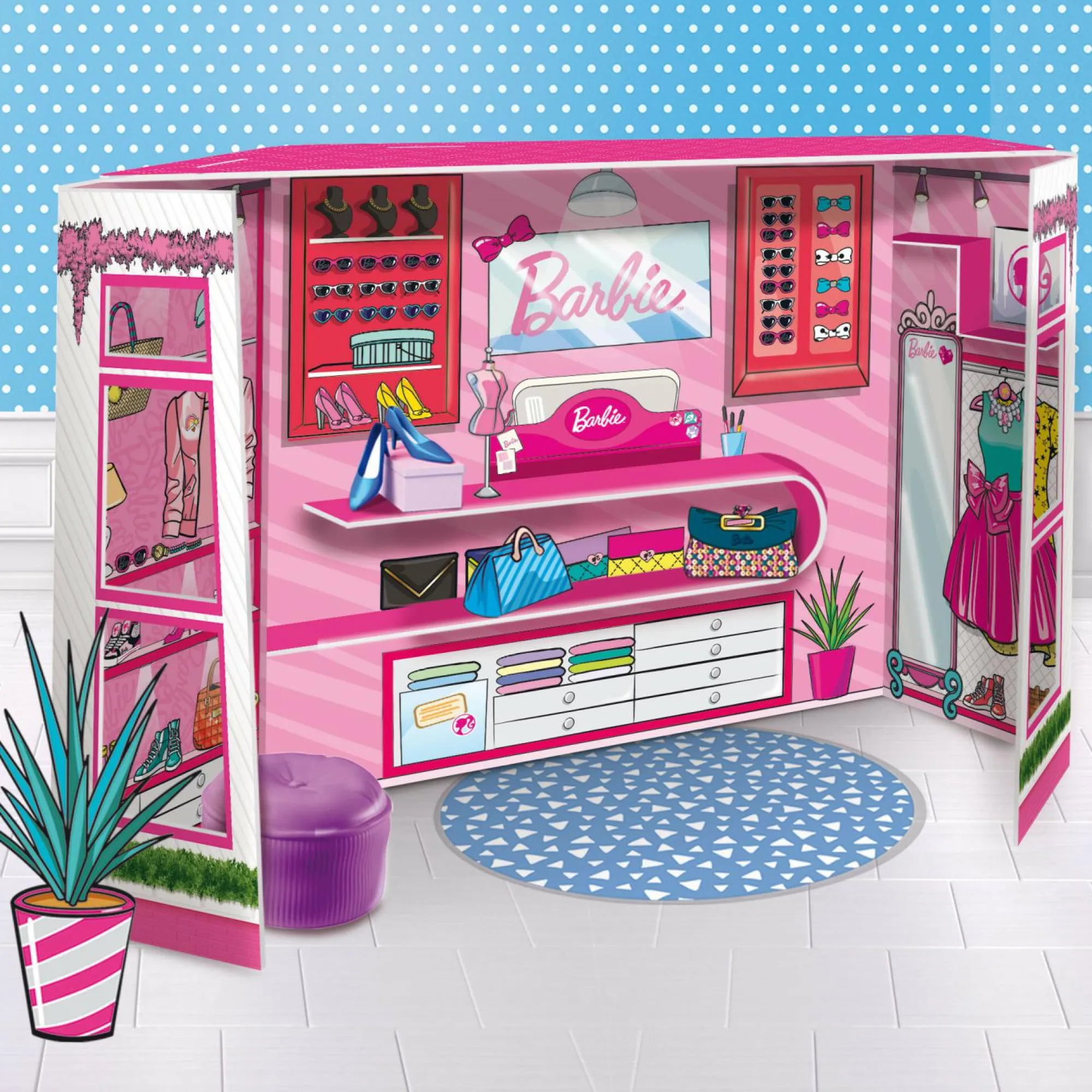 Boutique in cartonato da costruire! – Grande formato! – A misura di Barbie! – Gioca a fare la stilista con Barbie!