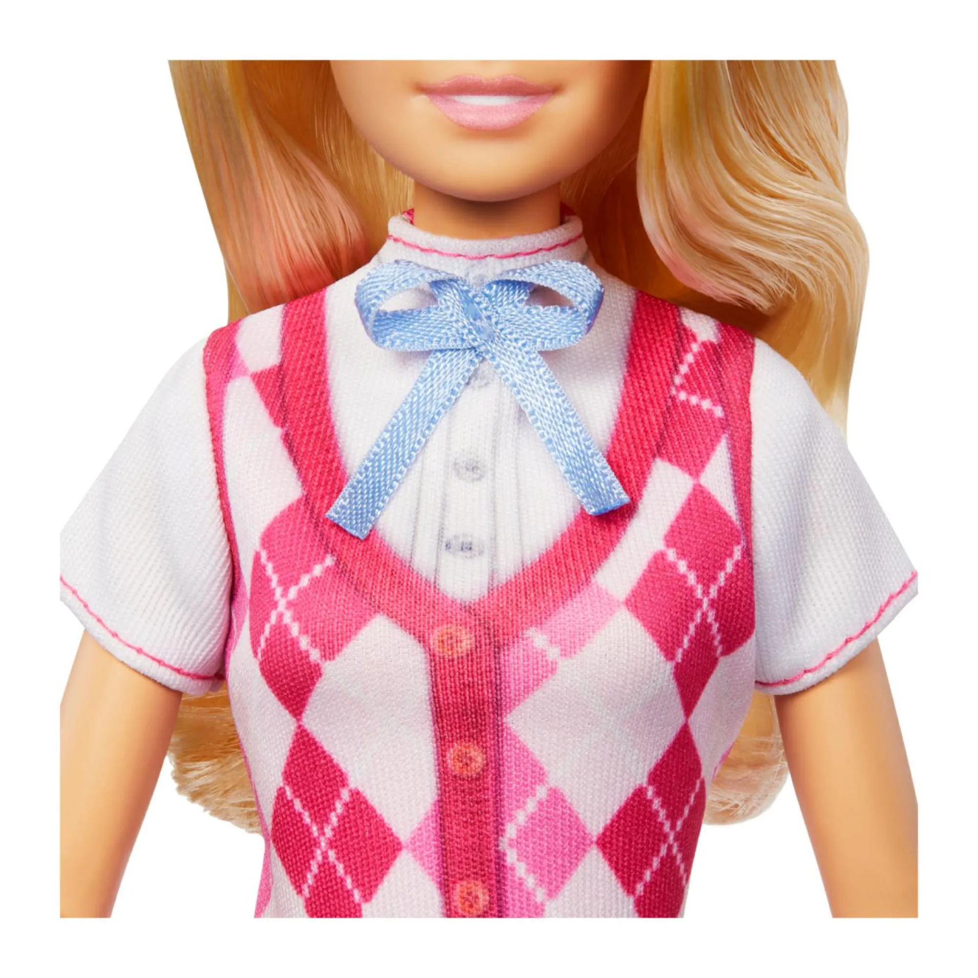 Per le sue avventure a cavallo indossa un gilet a rombi rosa rimovibile, pantaloni, stivali e caschetto!