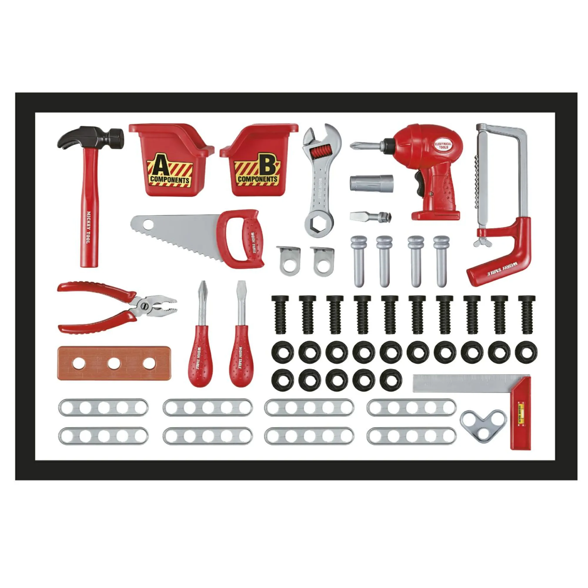 55 pezzi inclusi tra cui sega, cacciaviti, bulloni e viti, martello