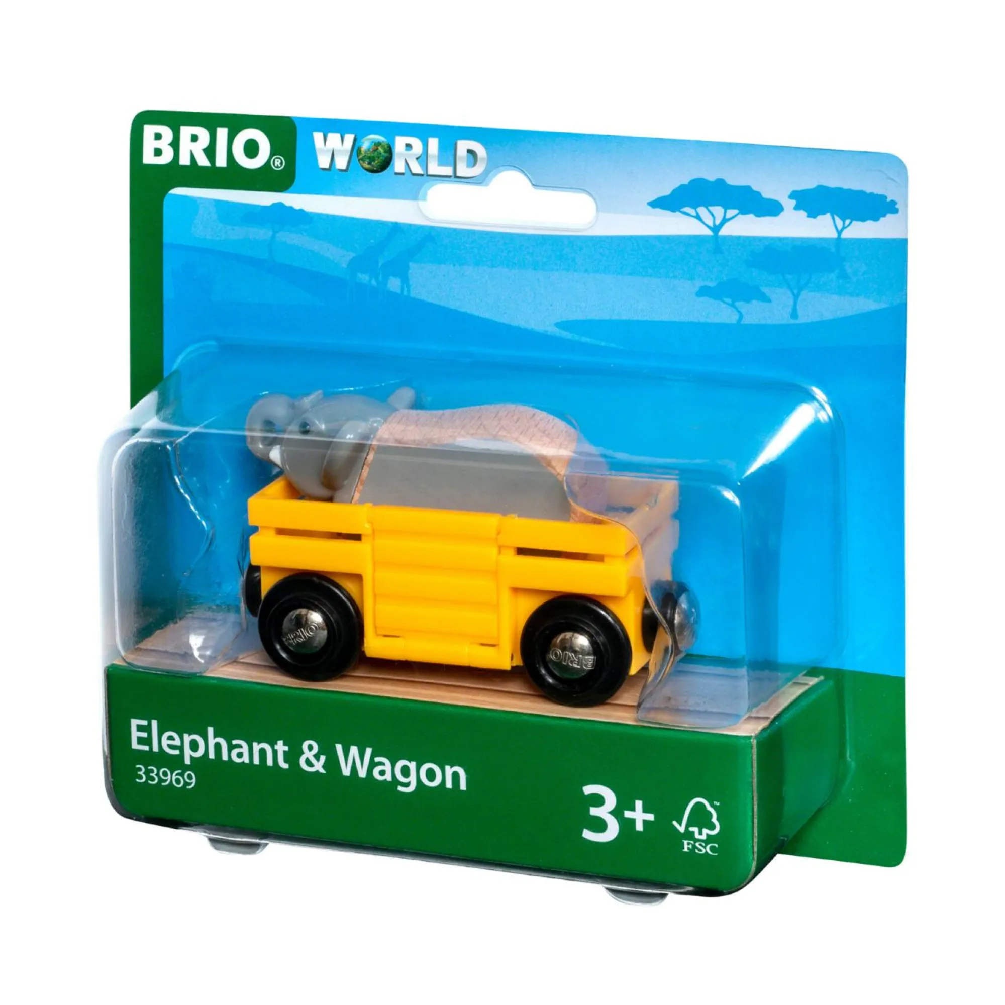 La confezione contiene un elefante in legno e plastica che si collega a qualsiasi componente della ferrovia