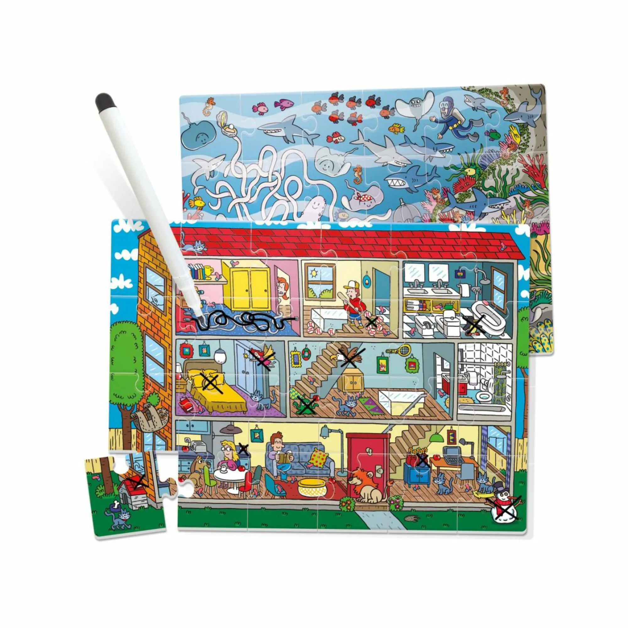 4 puzzle da 24 pezzi; 1 pennarello con cancellino