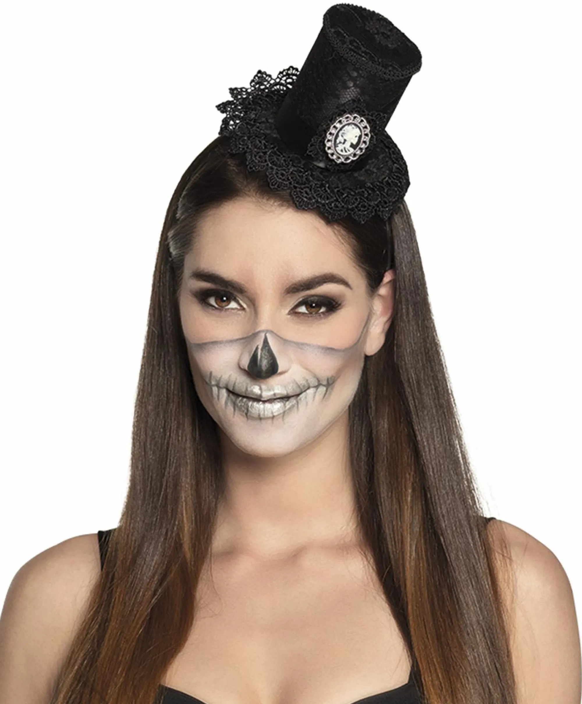 Cerchietto con applicato minicilindro vintage nero con pizzo e cameo.