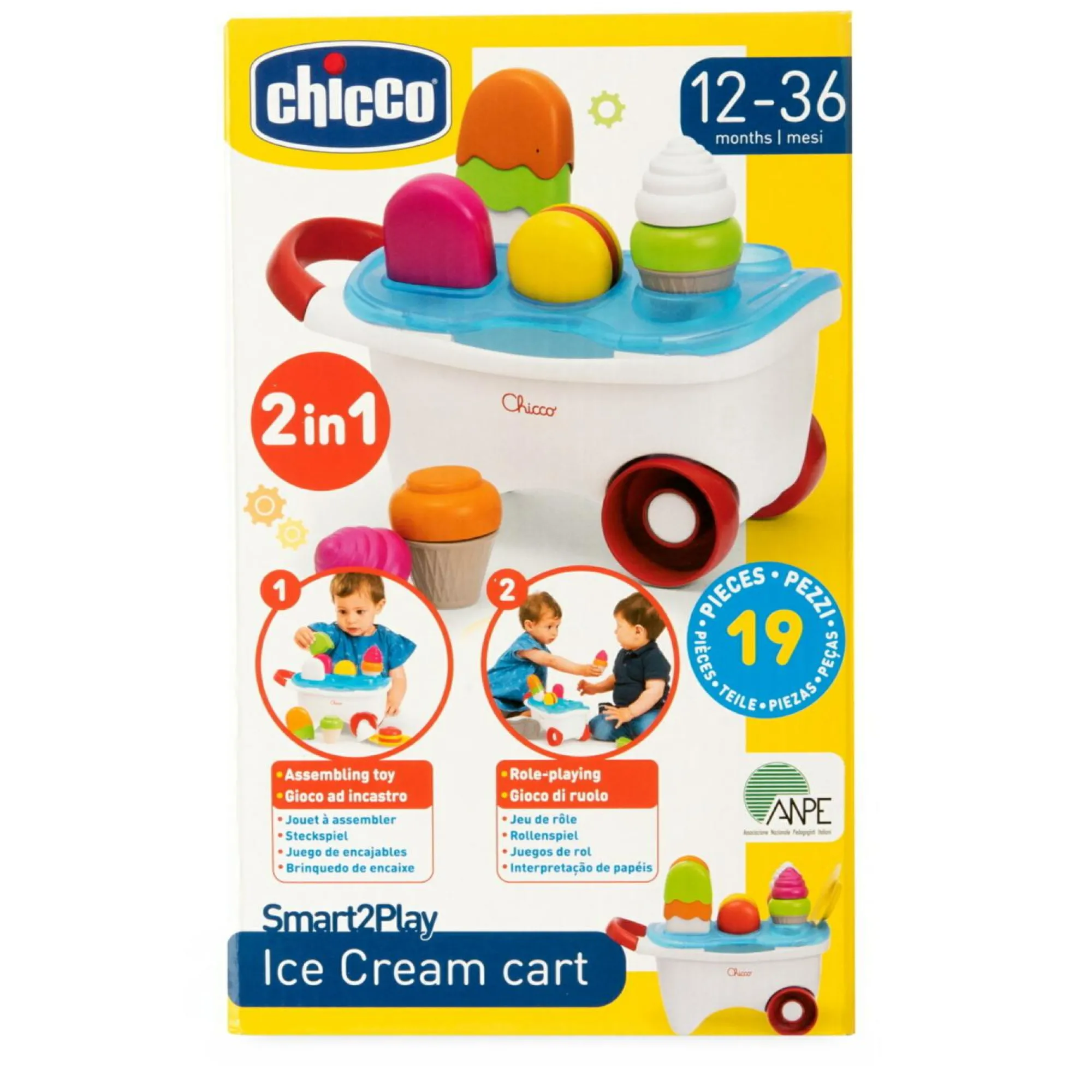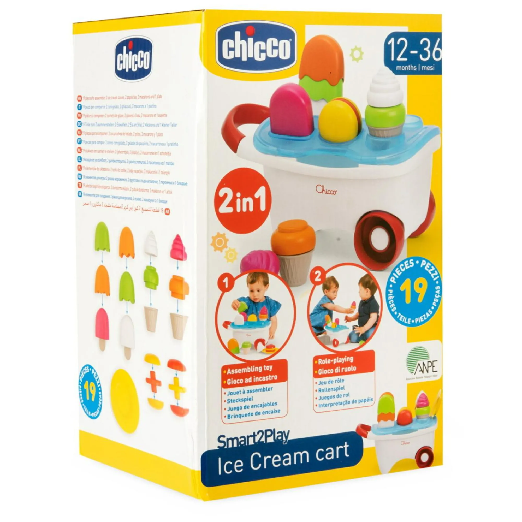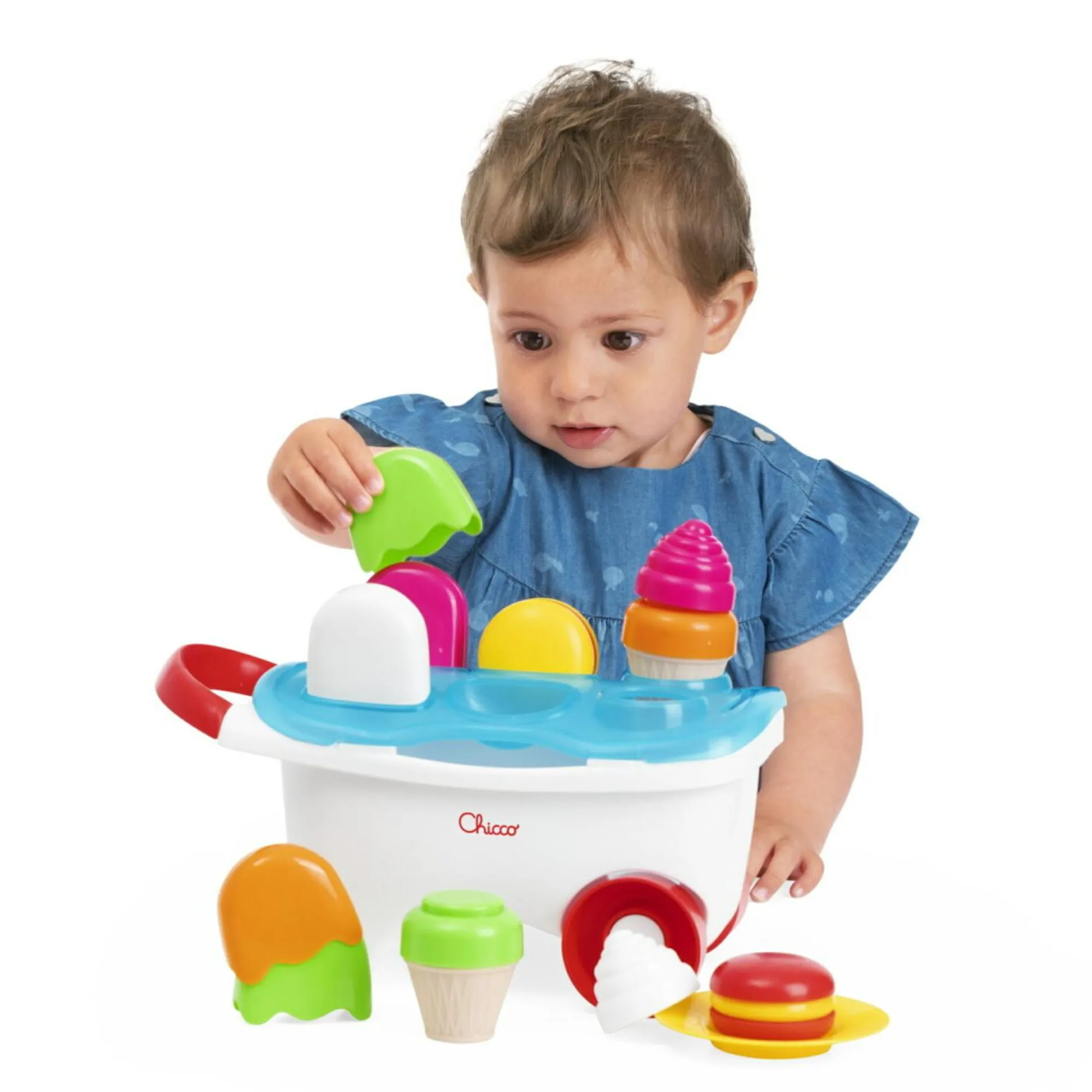 Gioco 2in1: impila dolci e gioca a vendere gelati con il carretto leggero. Stimola fantasia e creatività!