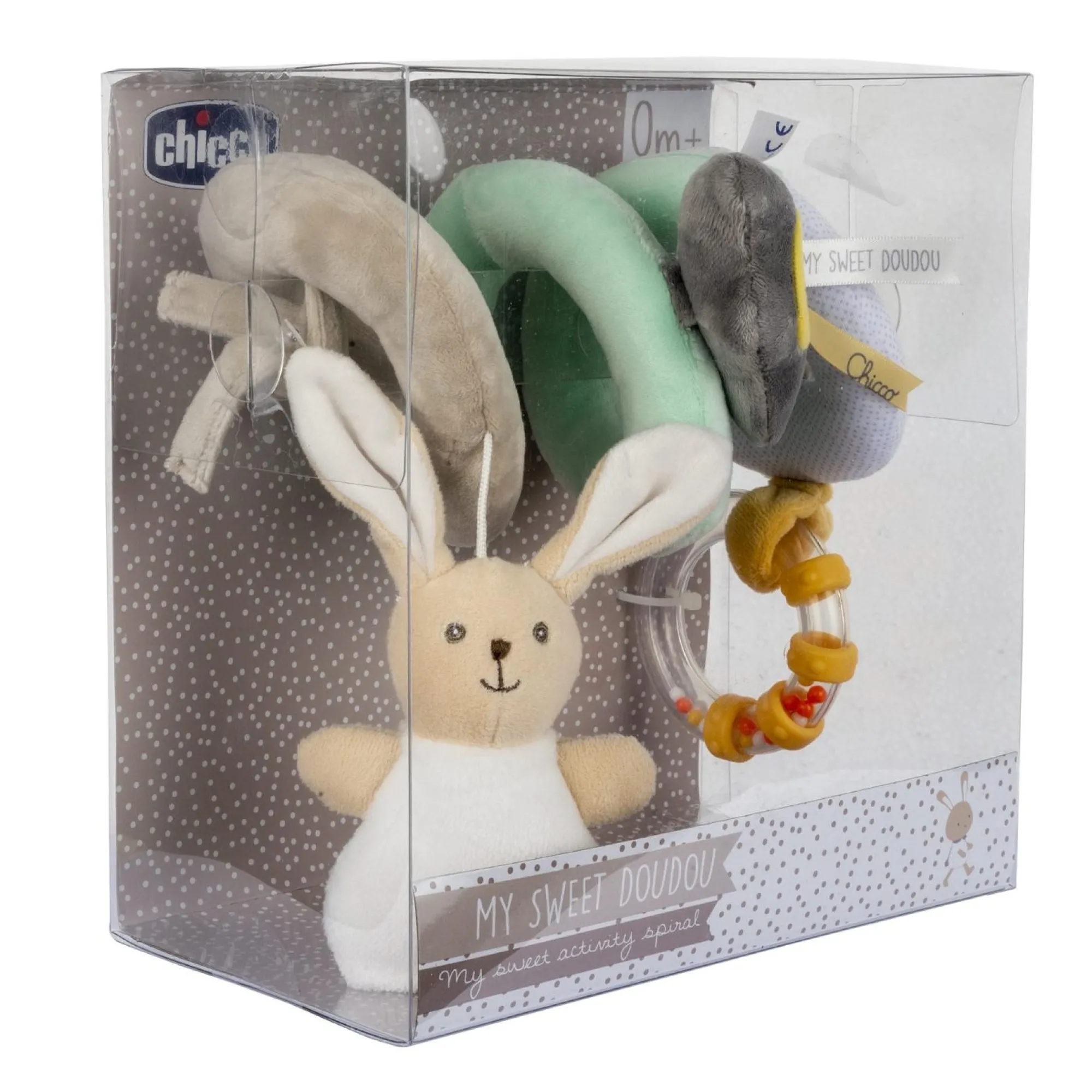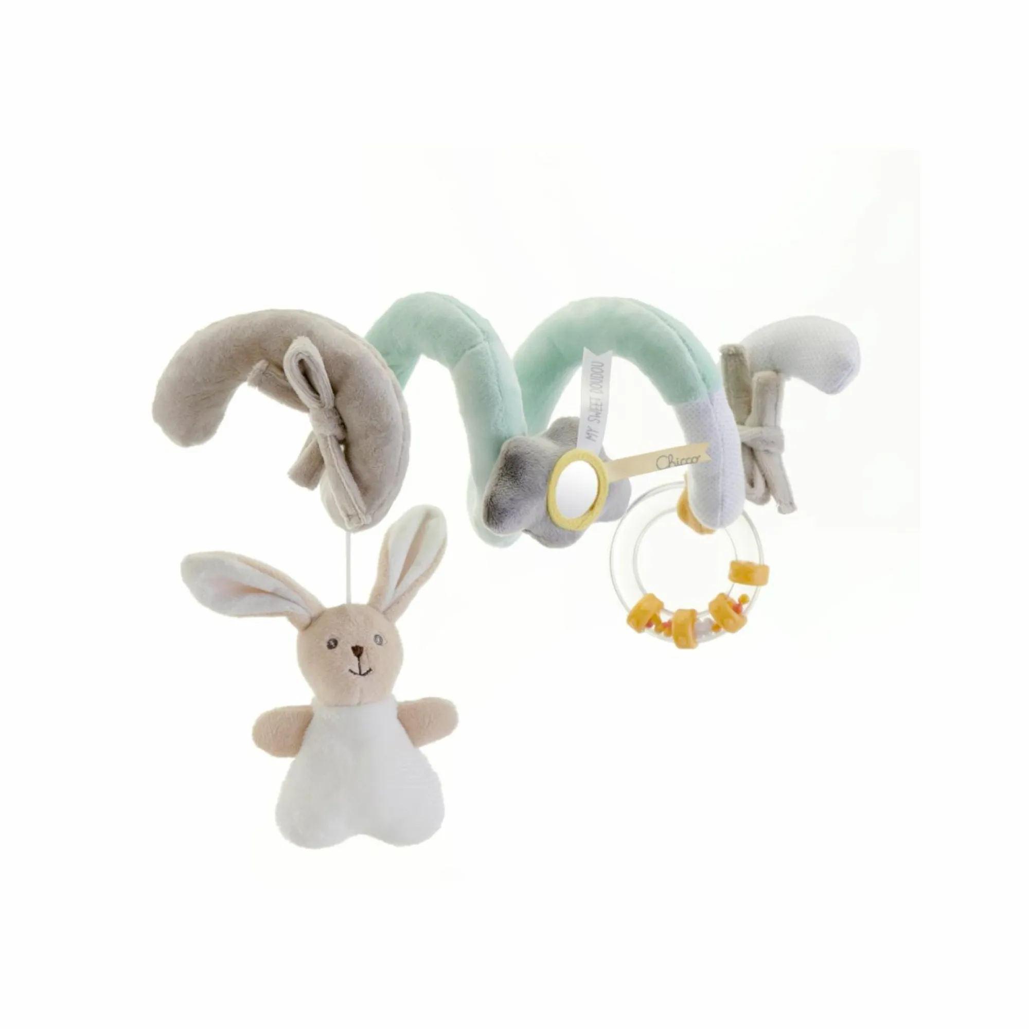 3 attività gioco: coniglietto, nuvola con specchio, sonaglio ad anello.