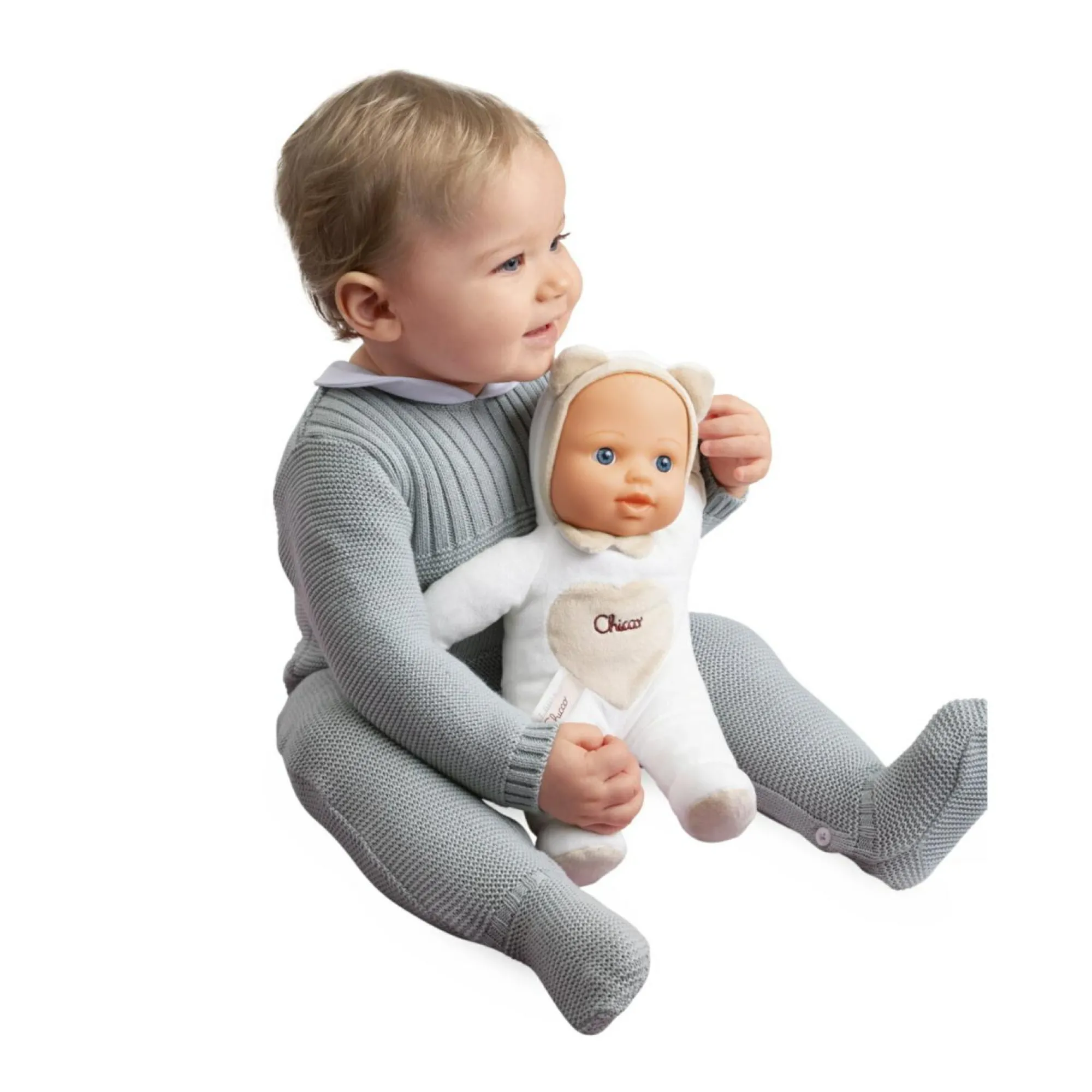 Corpo, mani e piedi della bambola sono realizzati in morbido tessuto.