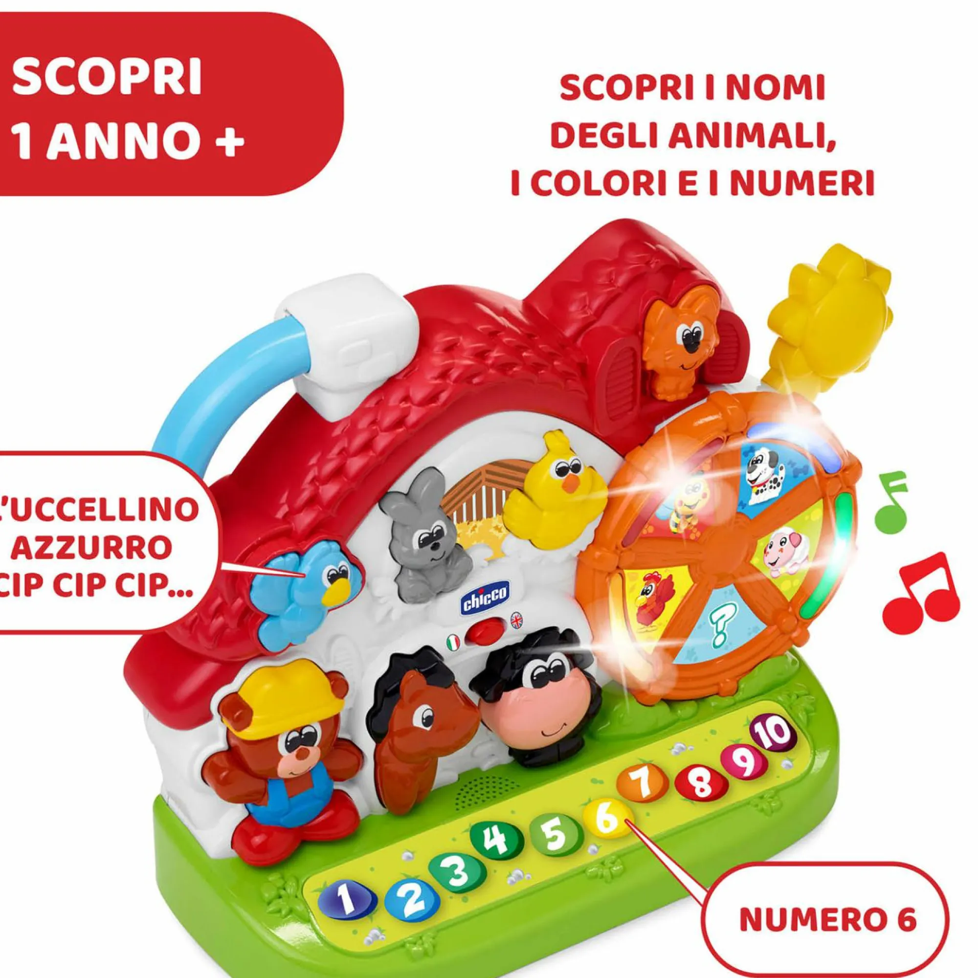 Ricca in contenuti educativi: oltre 50 parole, domande, canzoni e suoni.