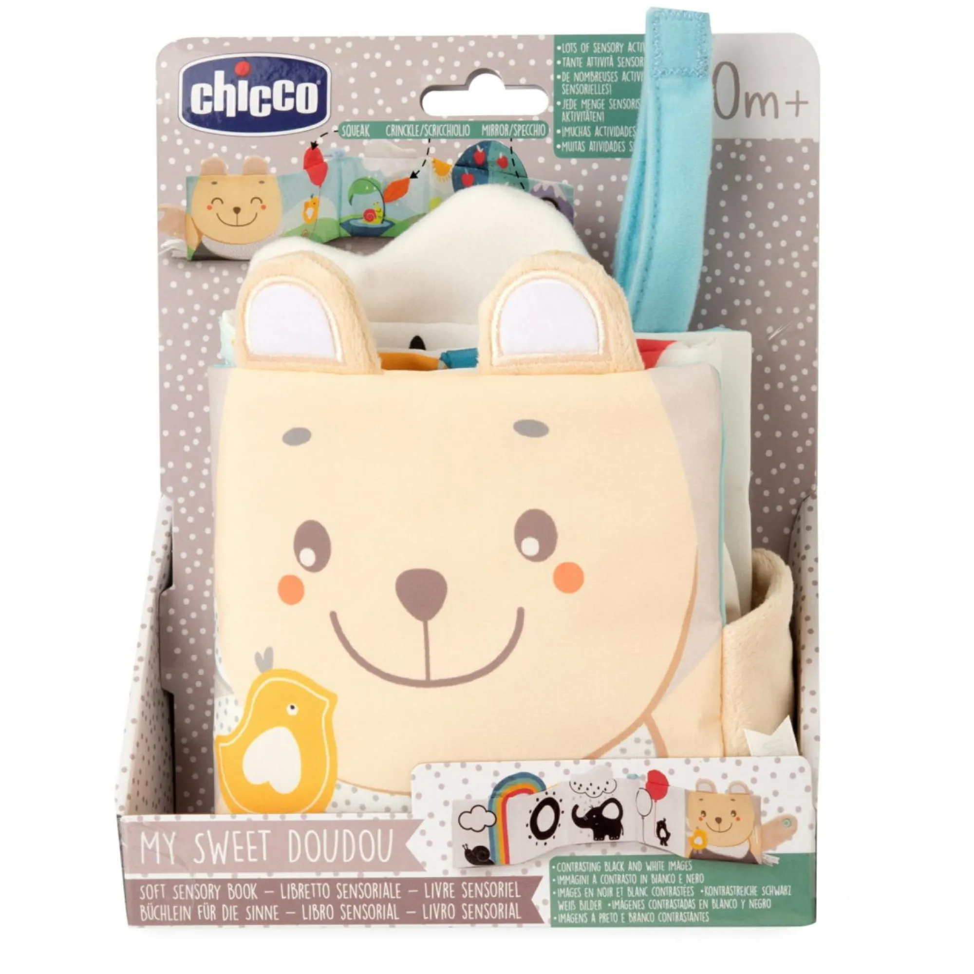 Illustrazioni ad alto contrasto per stimolare la vista e il tatto fin dalla nascita.