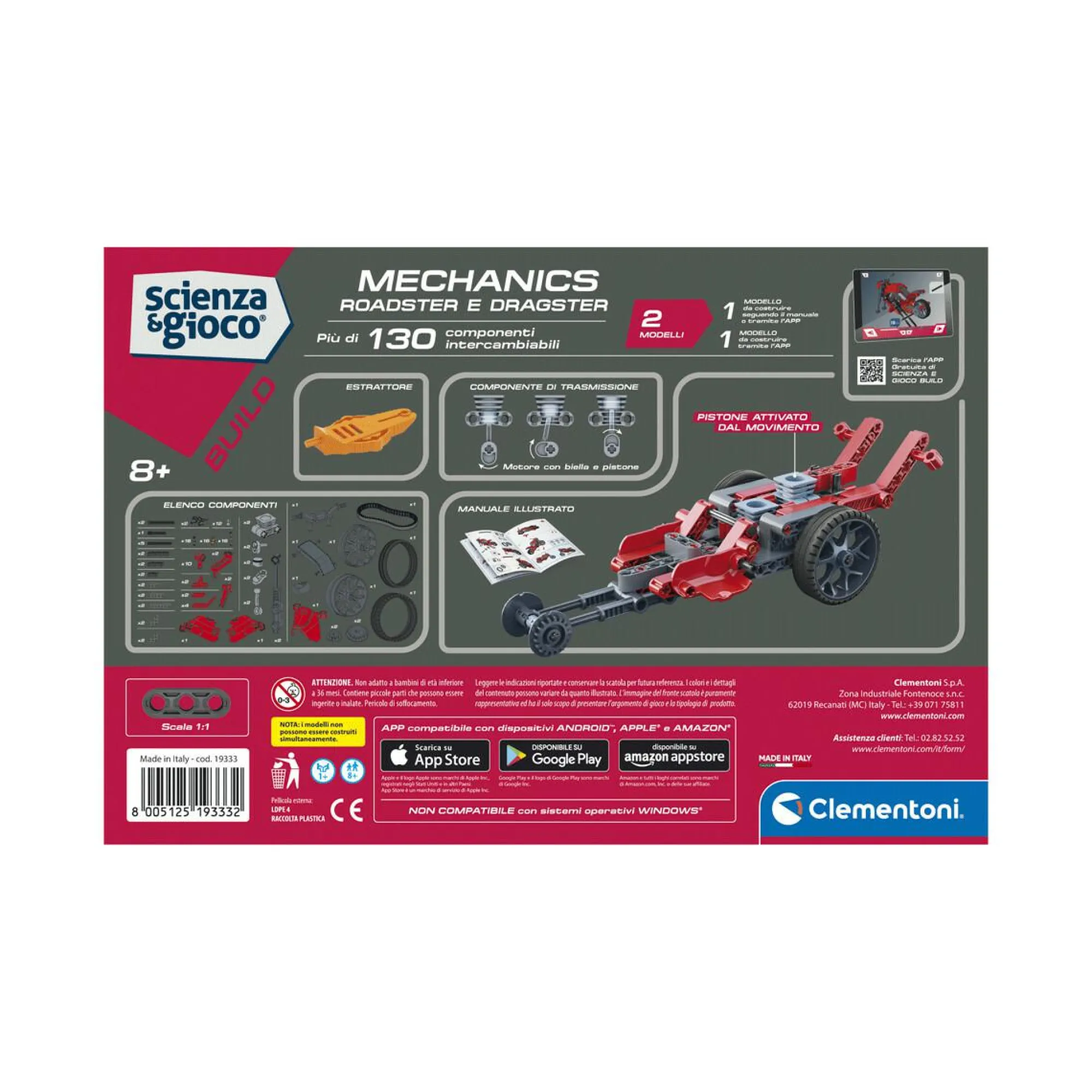 Un kit scientifico made in Italy con cui divertirsi ad assemblare una moto Roadster o un dragster! Il kit contiene oltre 130 pezzi per costruire 2 diversi modelli dotati di meccanismi a trasmissione