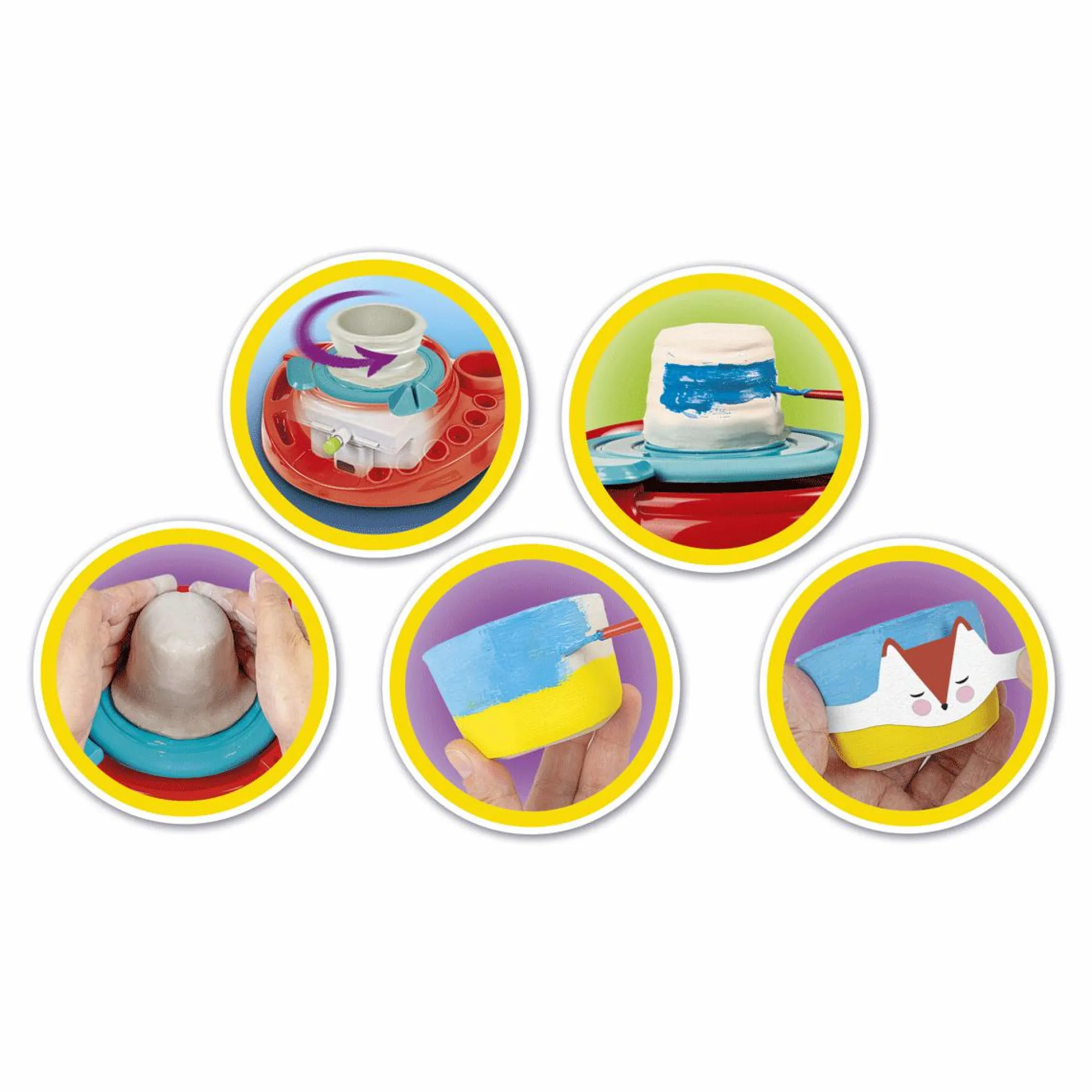 Tutto l’occorrente per modellare con lo speciale tornio elettrico oggetti fantastici!