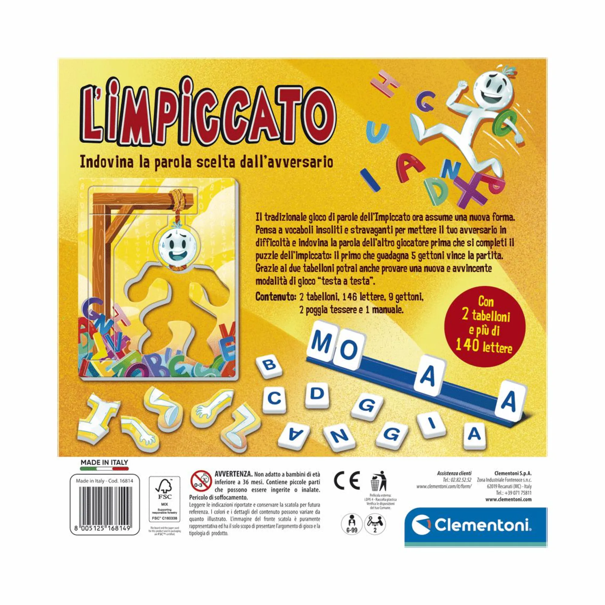 Tante lettere in formato tessera e gli iconici pezzi dell’impiccato per divertirsi insieme.