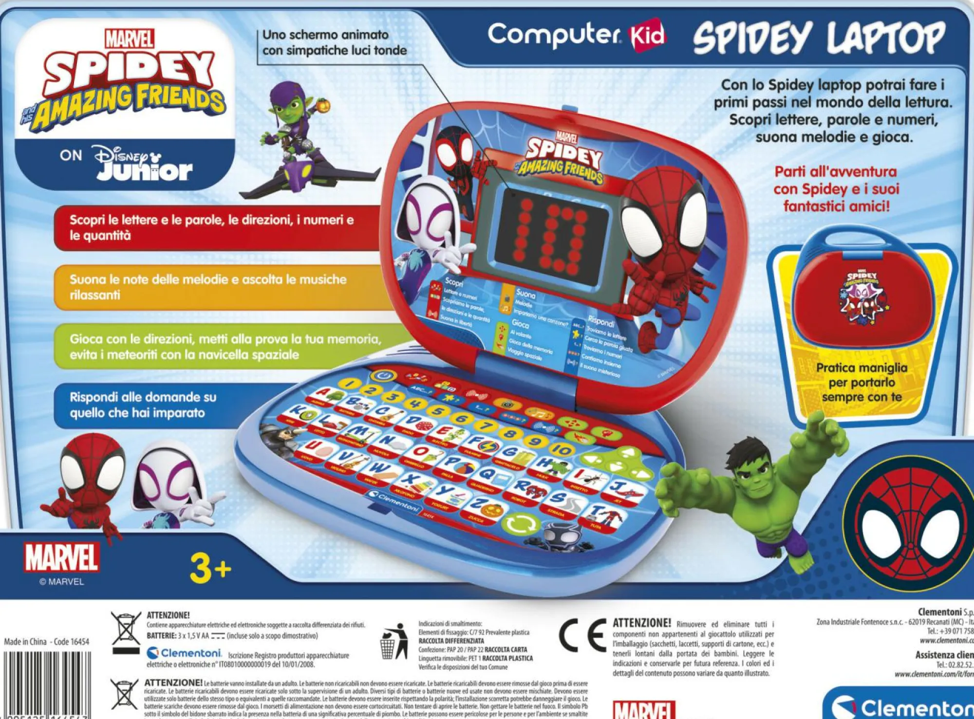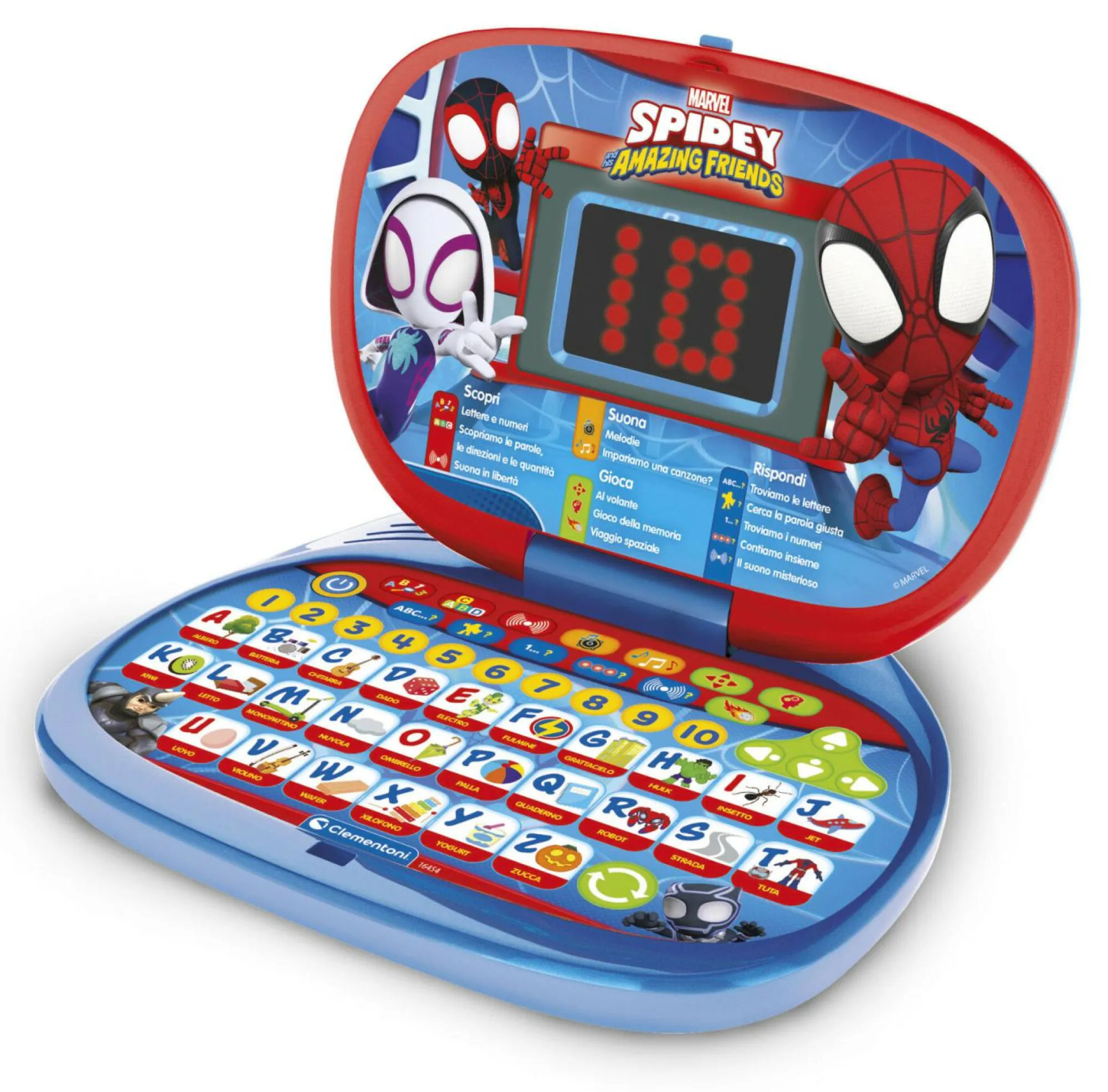 Un laptop interattivo e illustrato per entrare nel fantastico mondo di Spidey. Il bambino scoprirà l’alfabeto, i suoni delle lettere e si avvicinerà alla lettura scoprendo lettera per lettera le prime parole.
