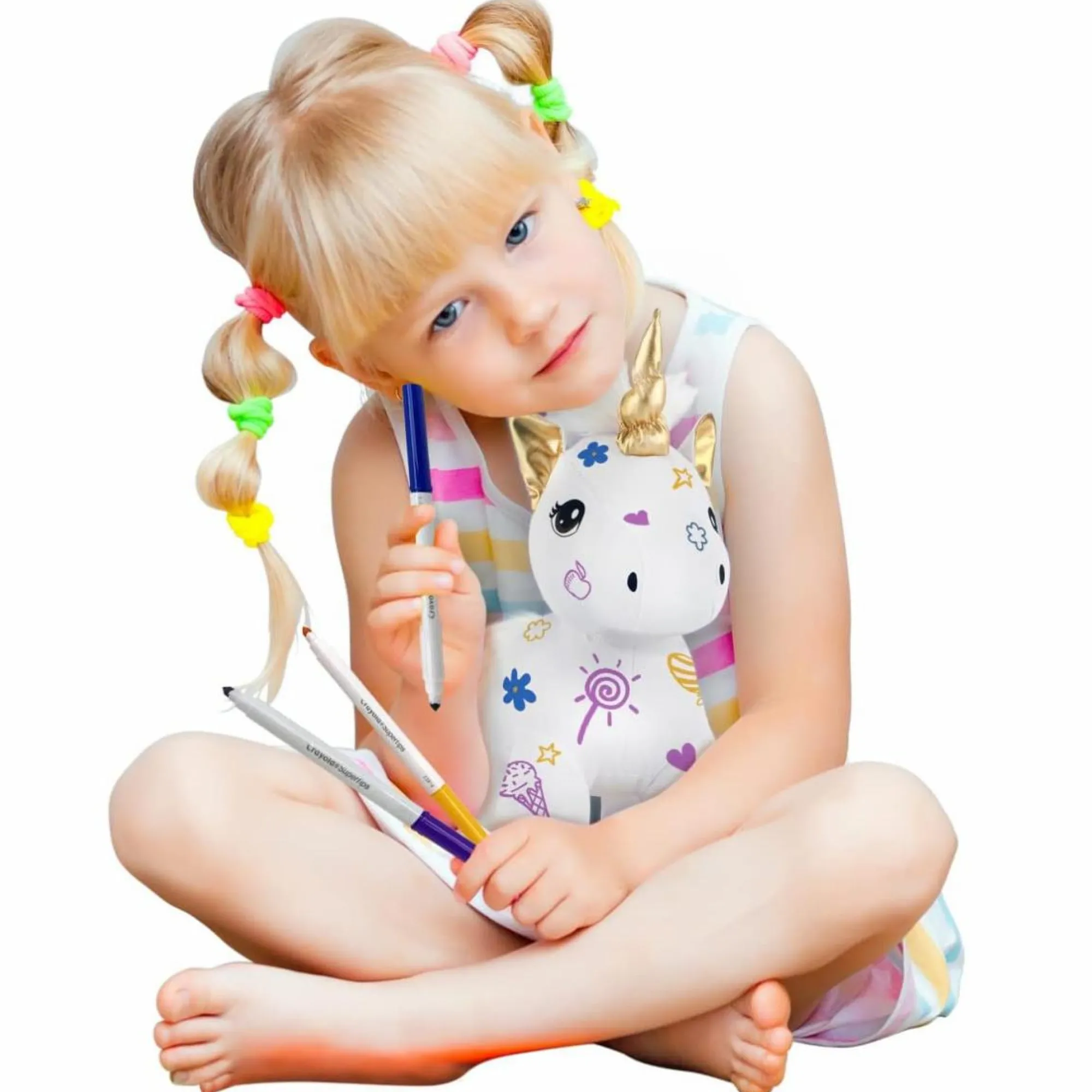 COLORA: con i pennarelli atossici e lavabili inclusi è possibile decorare e personalizzare l’unicorno seguendo la fantasia