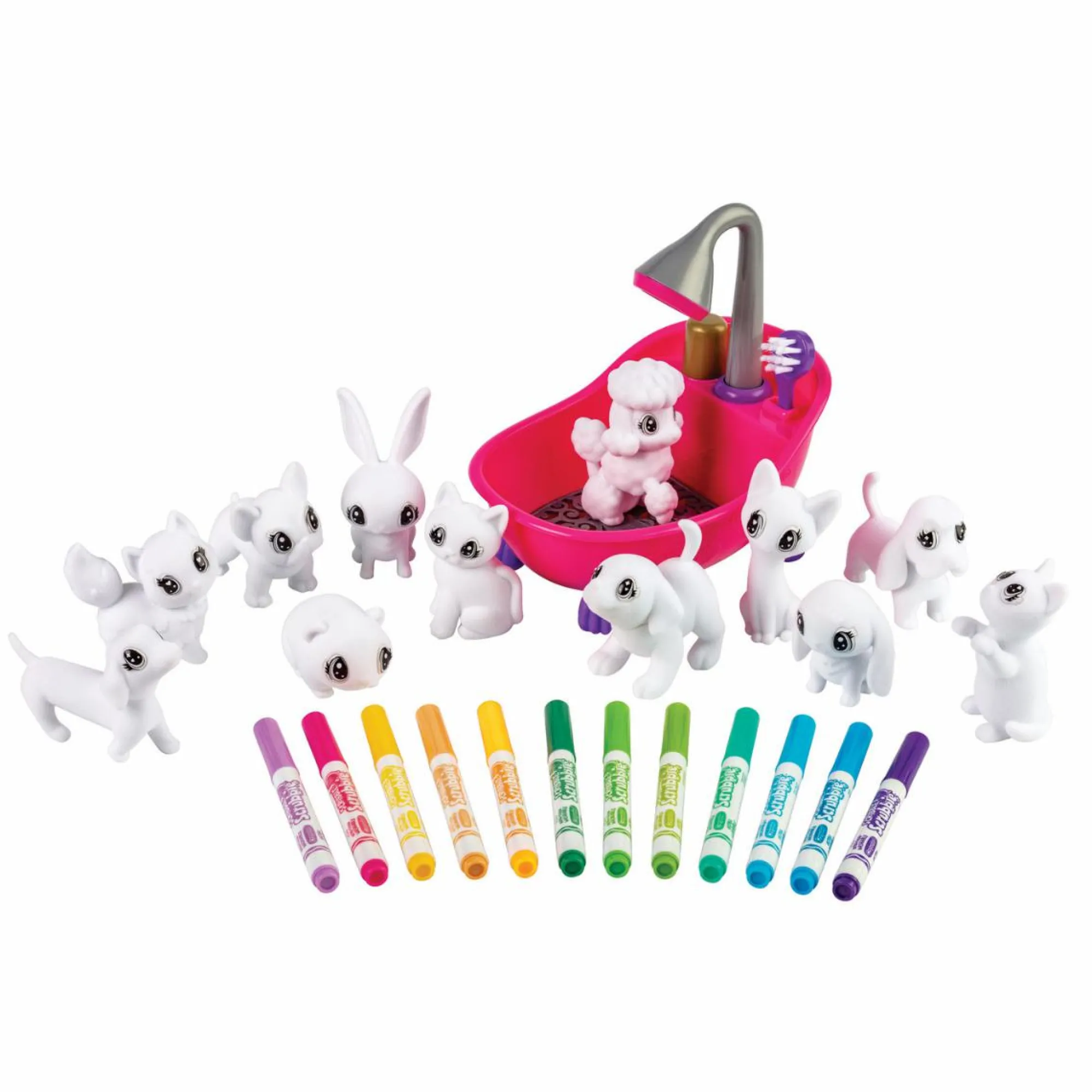 - Contenuto della confezione: 12 tenerissimi cuccioli lavabili, 12 pennarelli lavabili per poter colorare i tuoi cuccioli, 1 vasca, 2 spazzoline