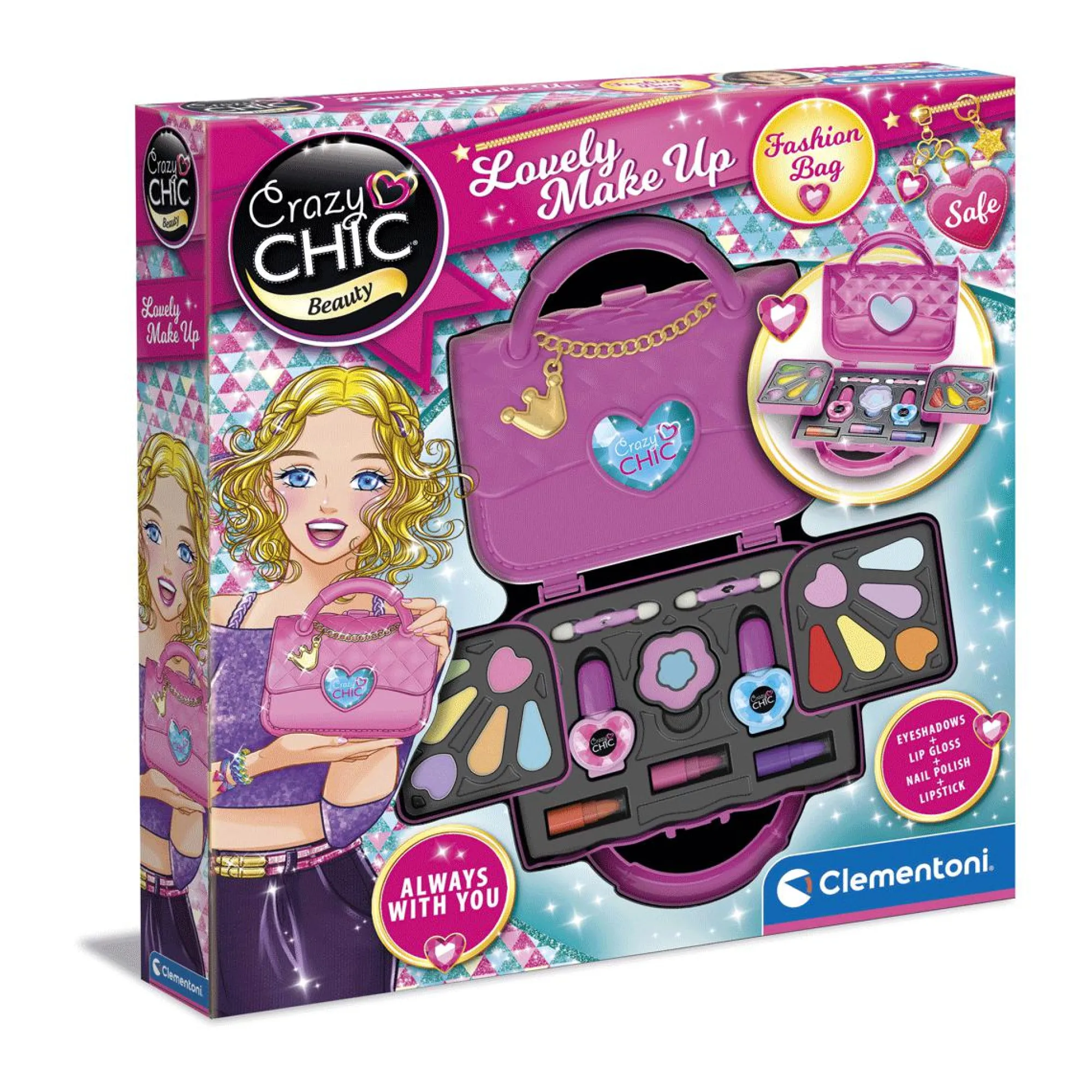 Pochette glamour, facilmente trasportabile, con tanti trucchi dalla resa tenue per un look naturale, sempre incantevole, con cui mettere in risalto la bellezza di ogni bambina.