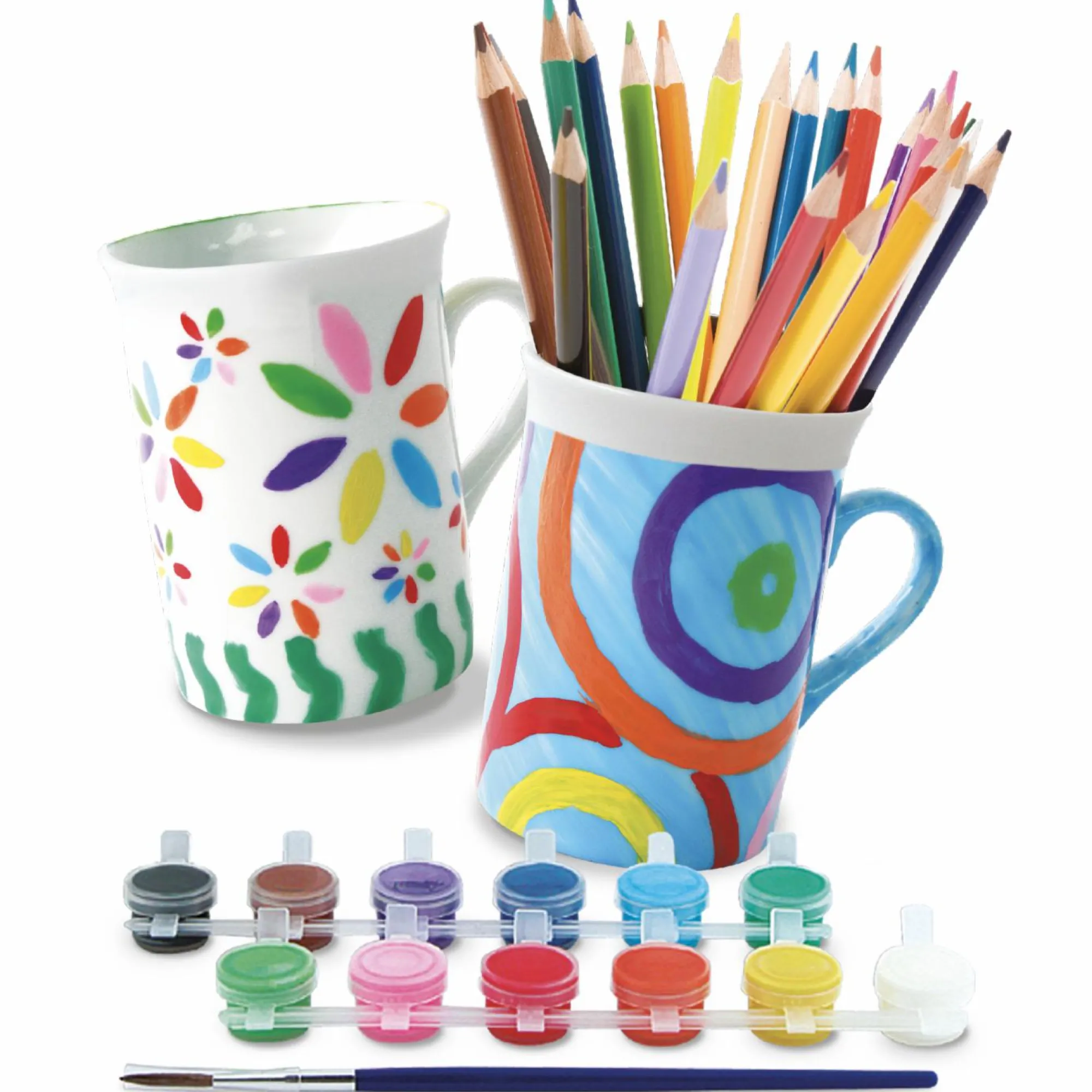 Pennello e 12 vasetti di tempere colorate inclusi