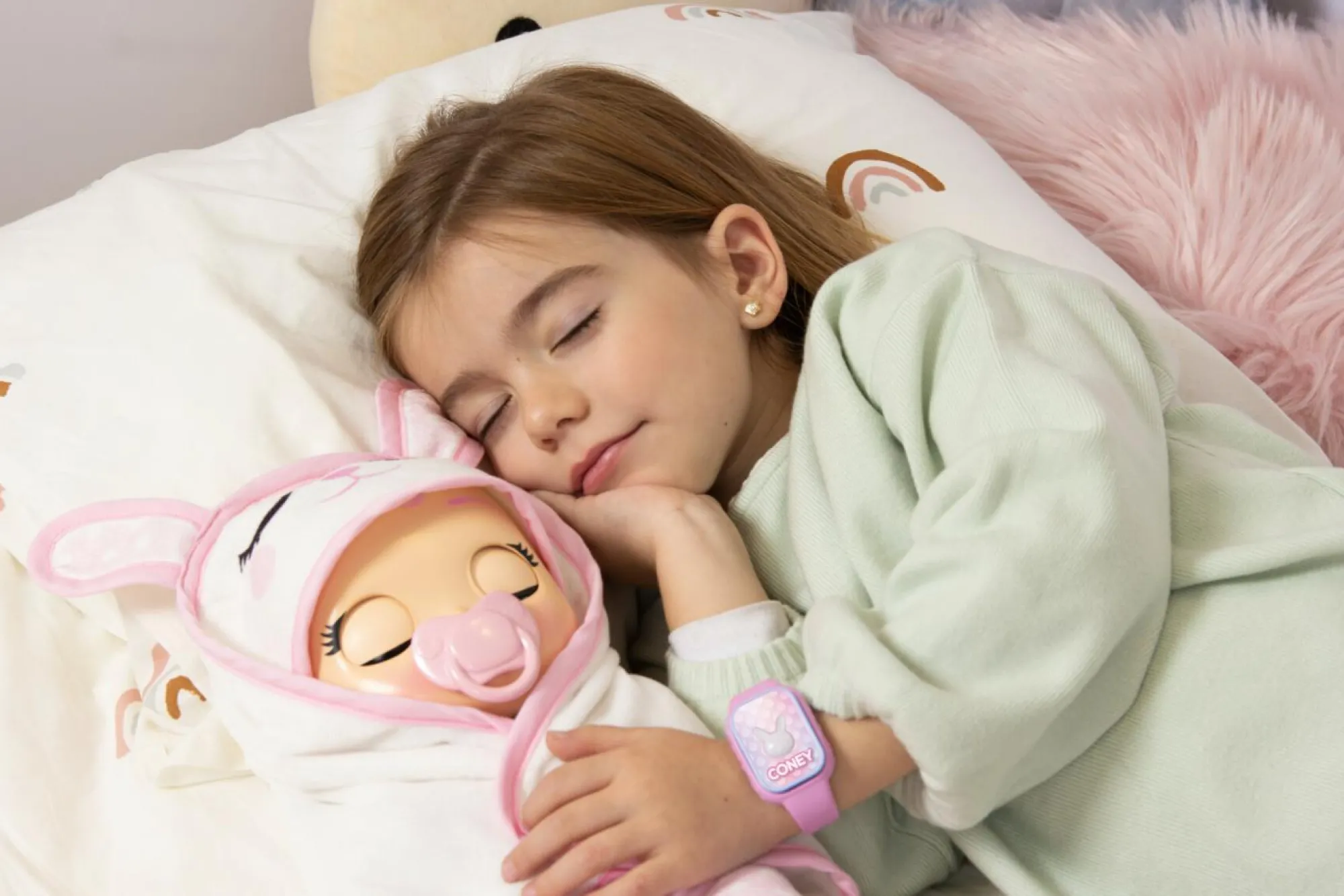 La nuova Cry Babies Newborn Coney è tenera e morbida come una vera neonata ed indossa un pigiamino e una copertina da coniglietto!