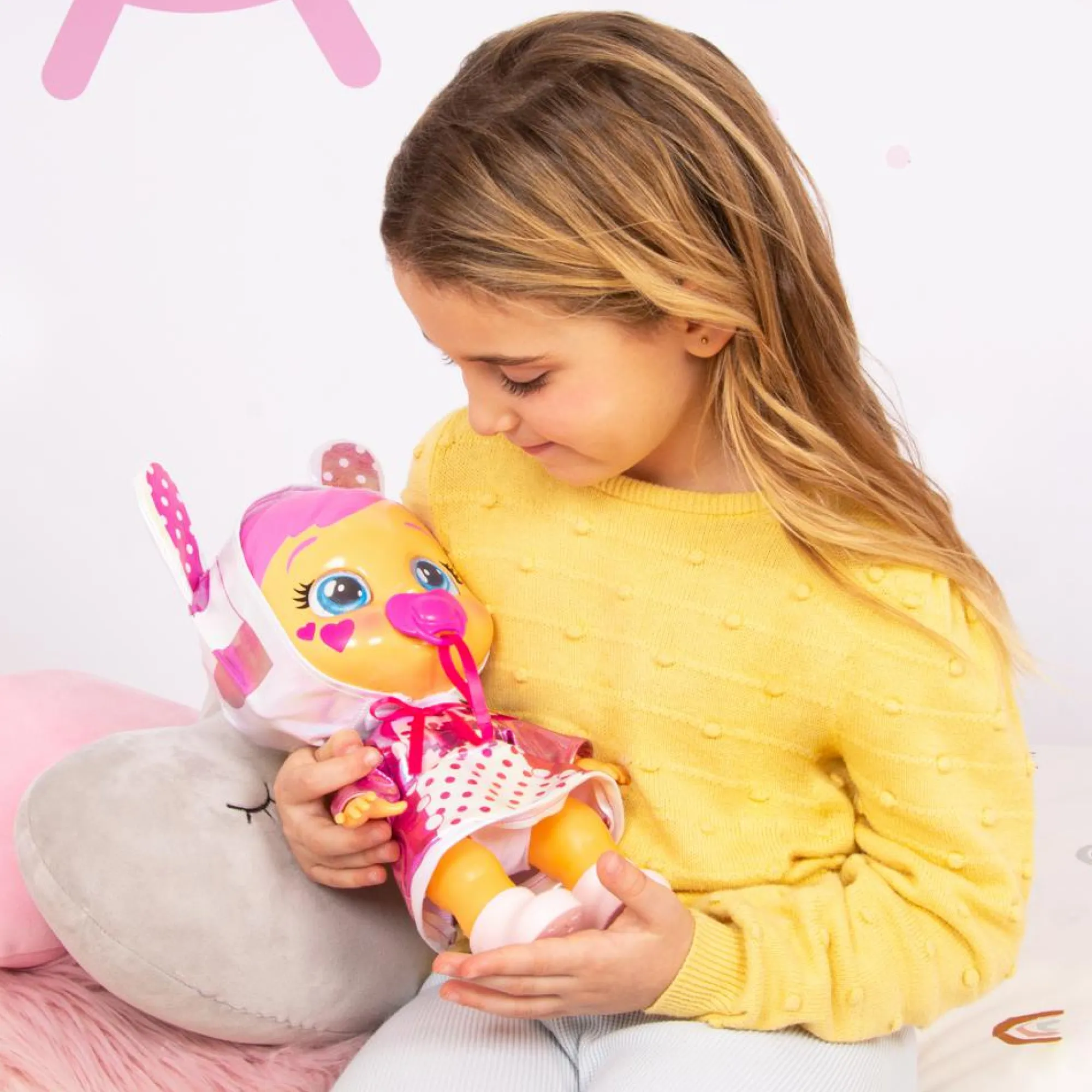 Quando piange con suoni realistici e lacrime vere, le stelle nei suoi occhi si illuminano! Per calmarla, dalle il ciuccio o il biberon, o cullala!