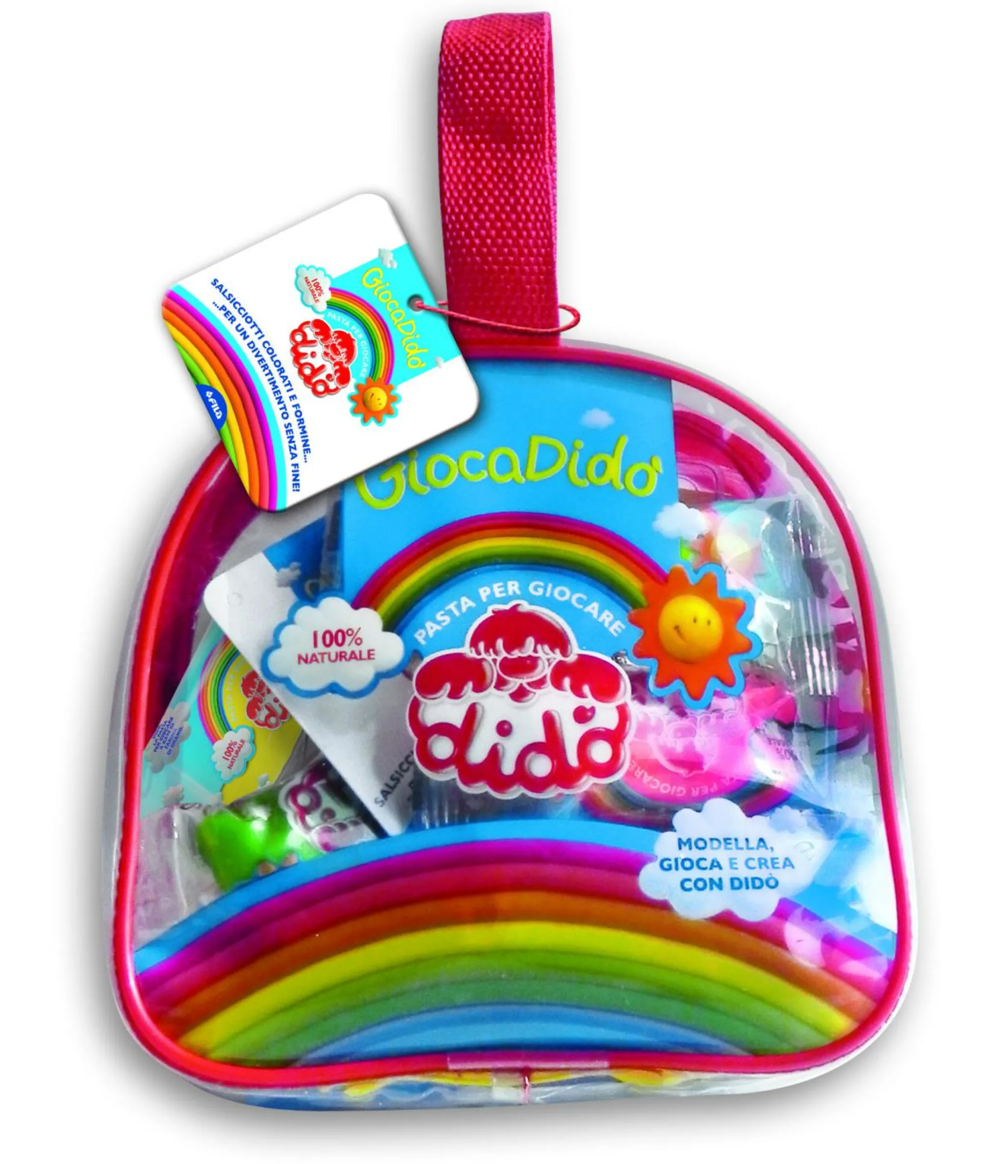 Pratica borsina in plastica trasparente con chiusura a cerniera contenente prodotti Didò