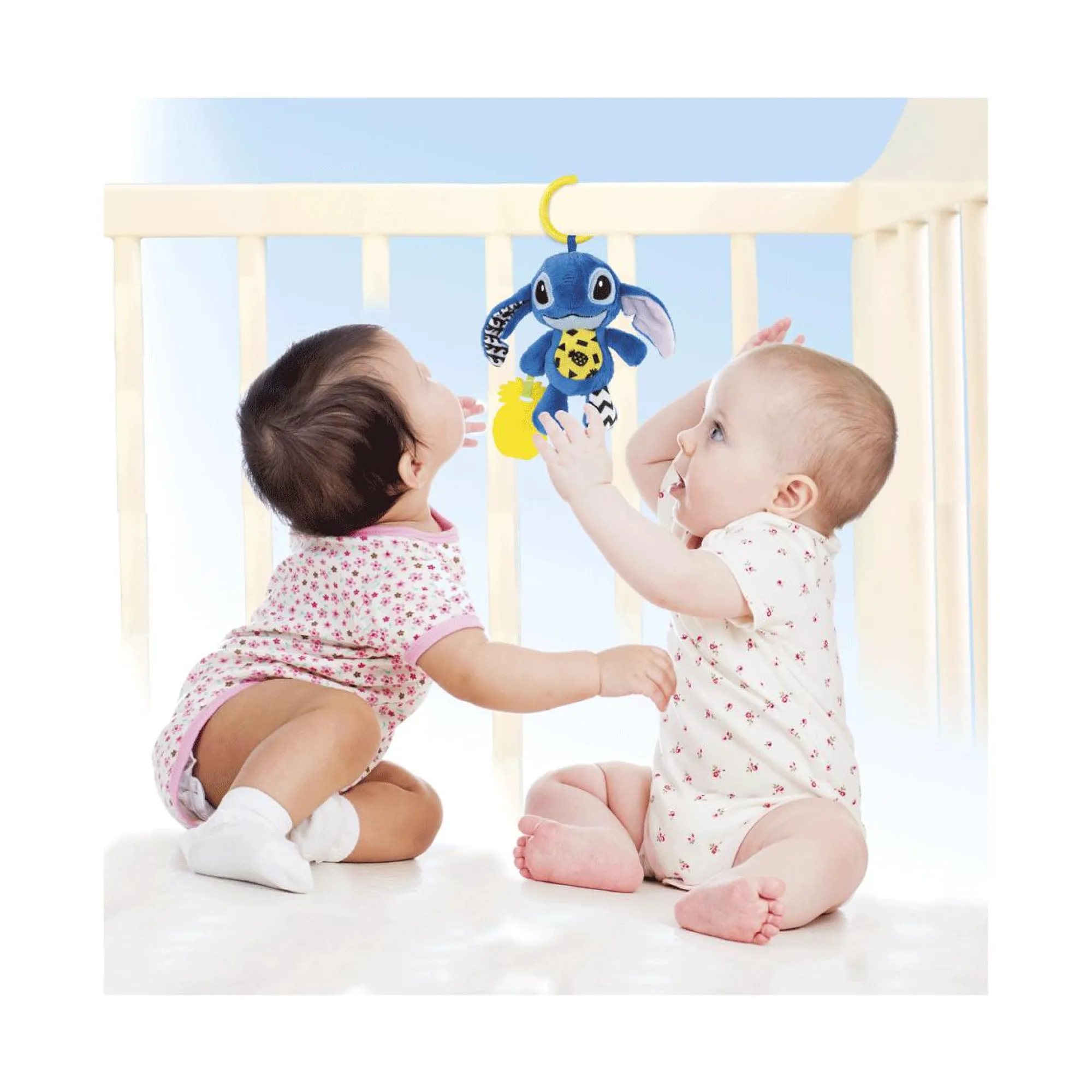 Con il pratico anello Stitch è appendibile al passeggino, alla culla o ovunque si voglia, per portarlo sempre con sé