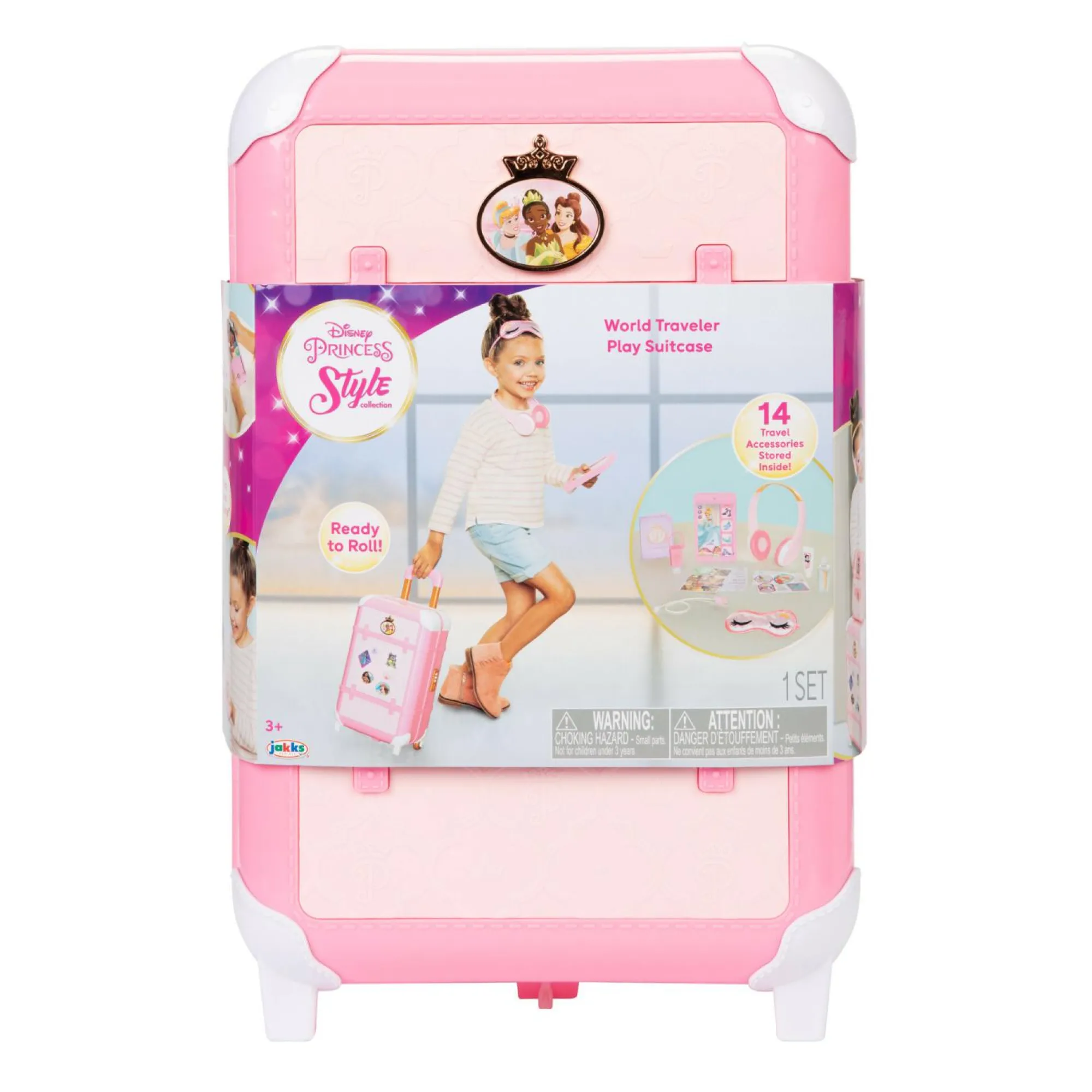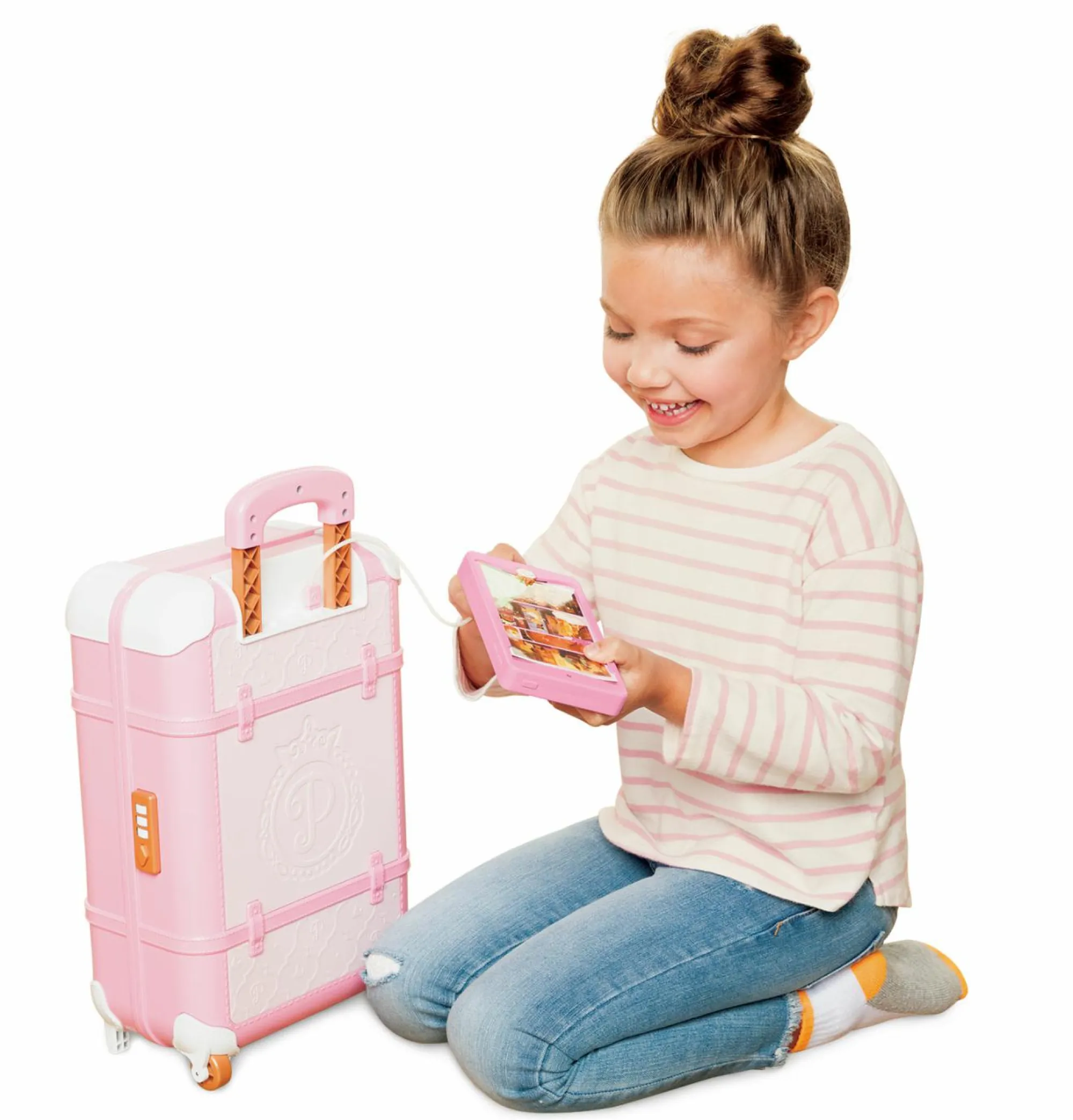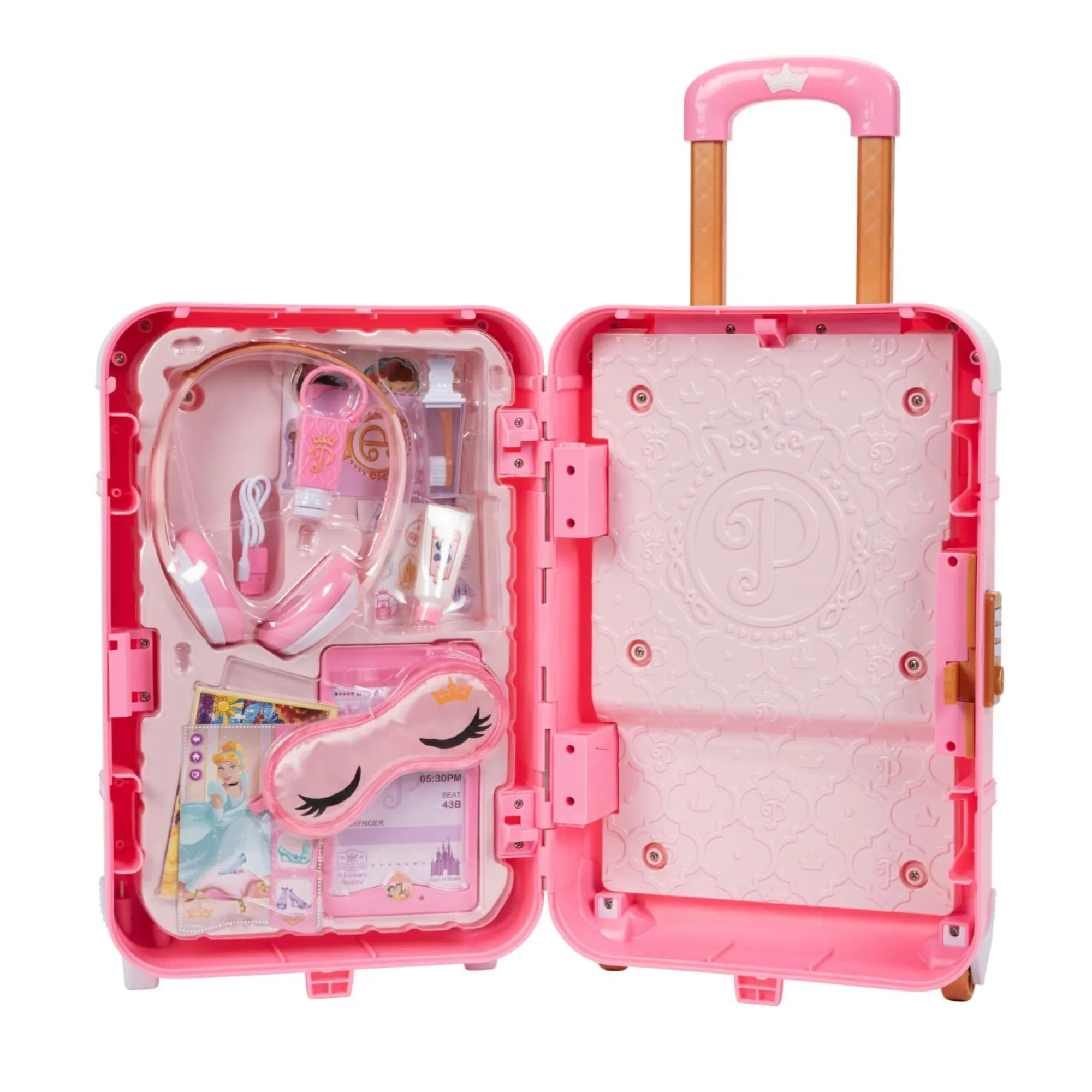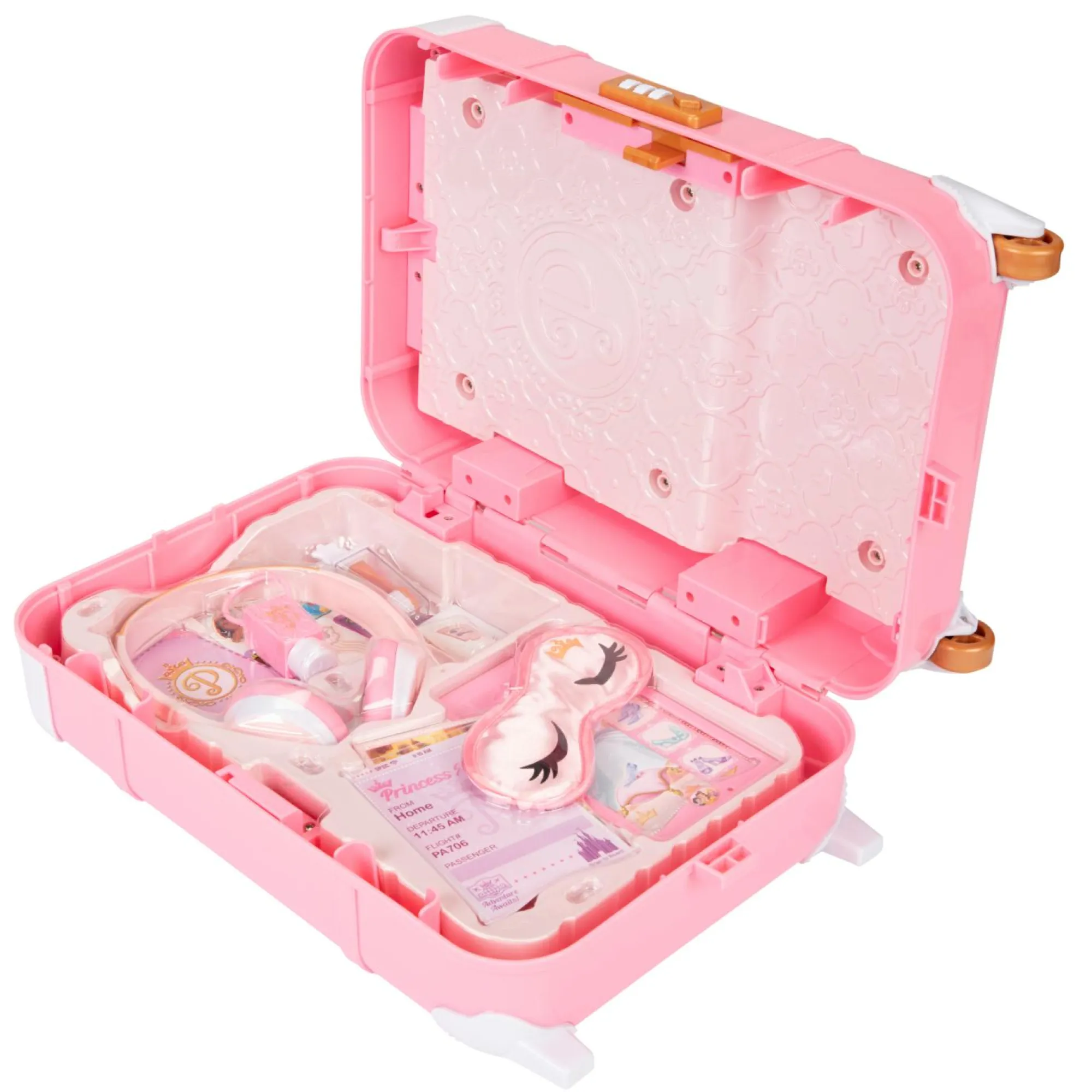 Il nuovo Trolley Deluxe della Disney Princess Style Collection include tutti gli elementi essenziali per viaggiare con stile! Include 17 accessori giocattolo da viaggio: biglietti aerei, passaporto, mascherina per gli occhi, auricolari e molto altro!