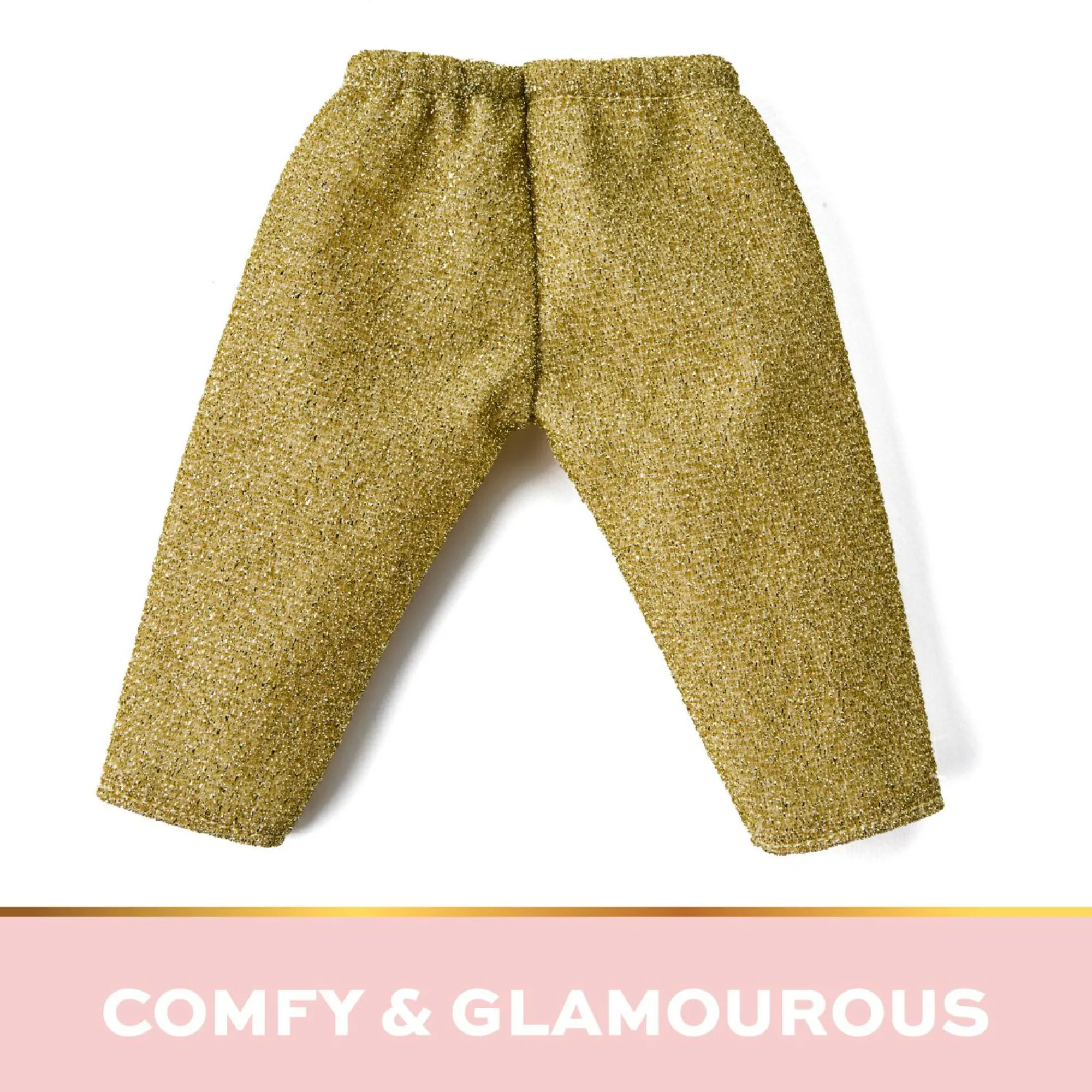 Include pantaloni dorati scintillanti per un tocco alla moda.