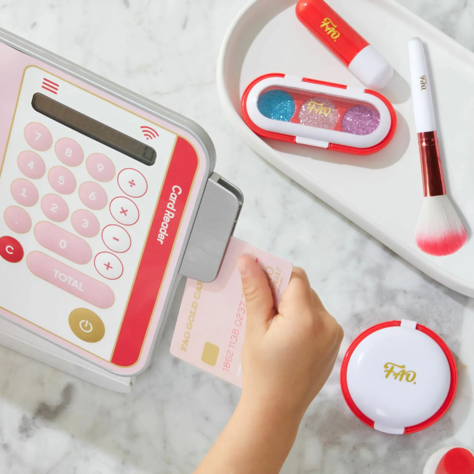 Registratore cassa interattivo per il negozio di cosmetici, con calcolatrice, scanner e lettore di carte