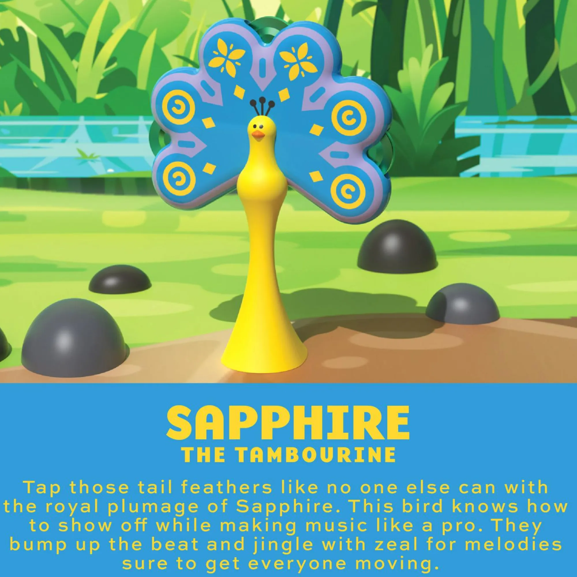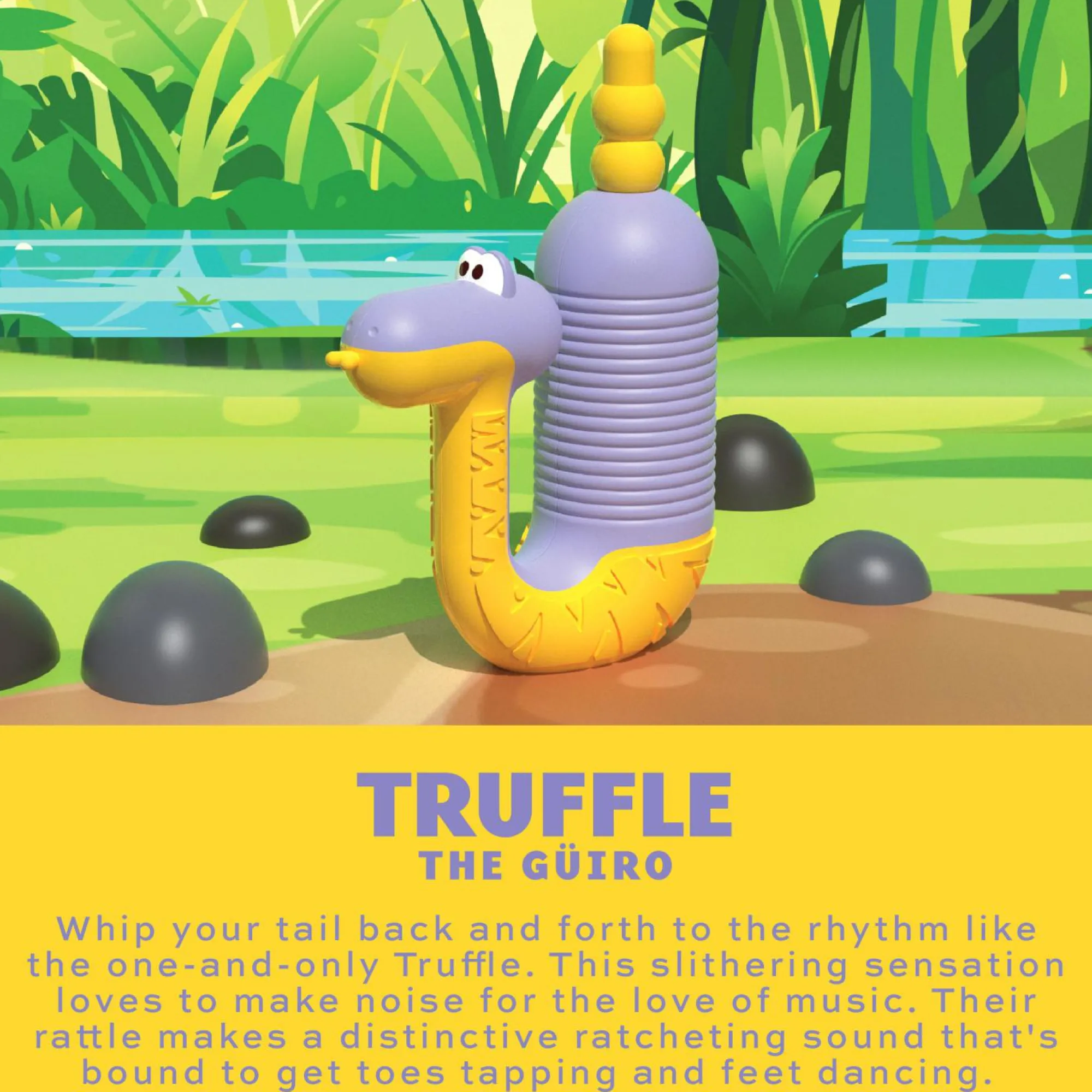 Dispone di strumenti a percussione a forma di animale per un apprendimento divertente.