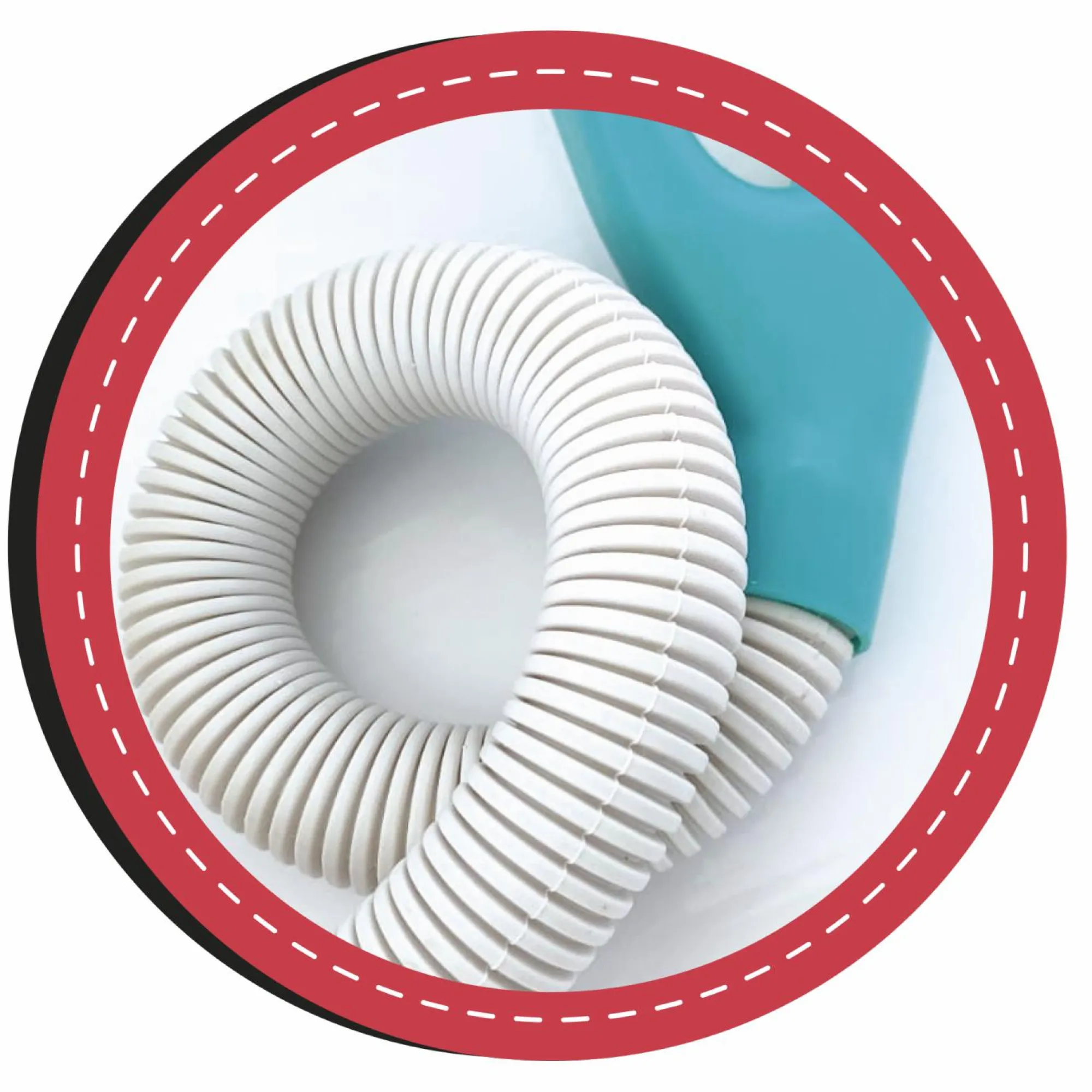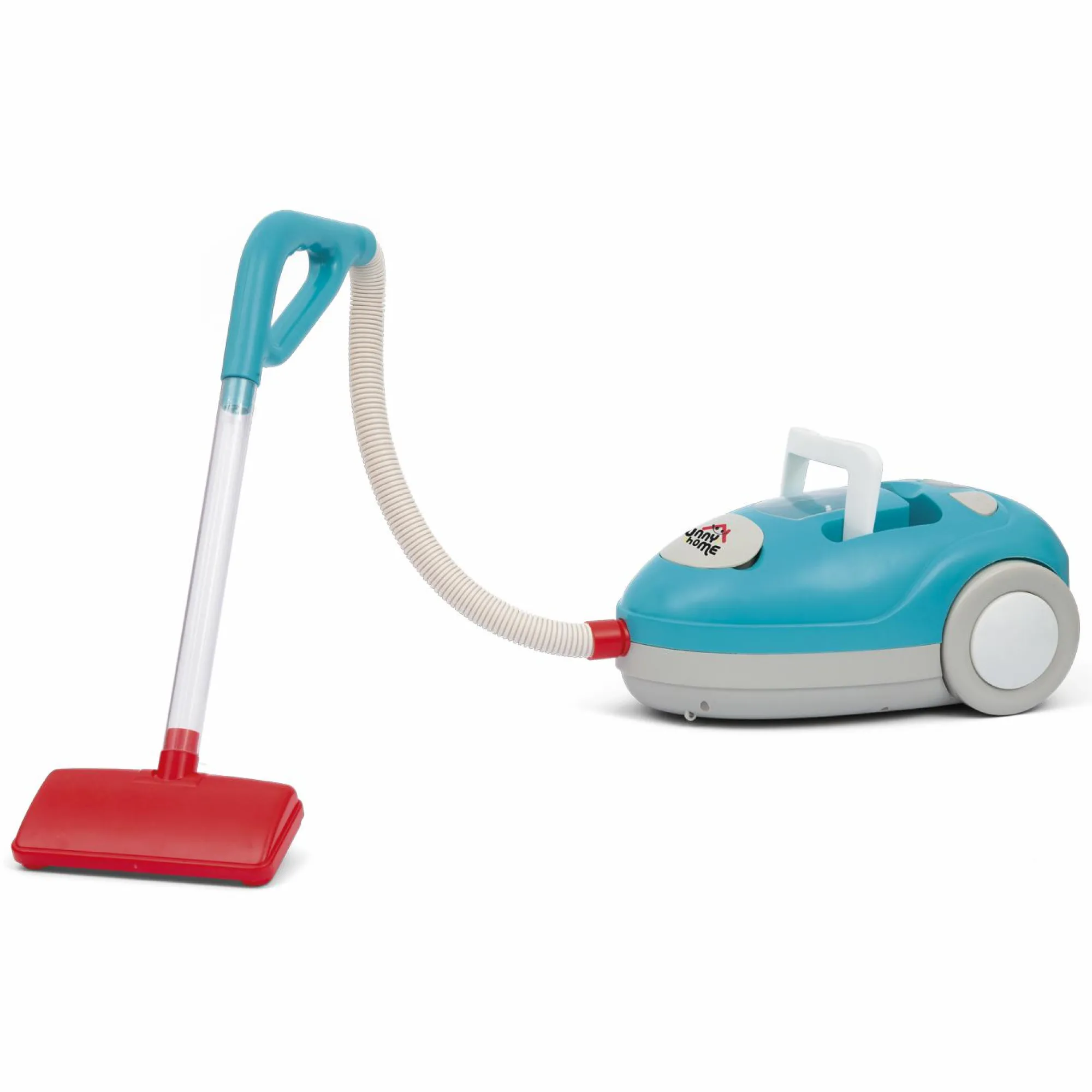 Aspirapolvere su ruote, con tubo flessibile e maniglia.