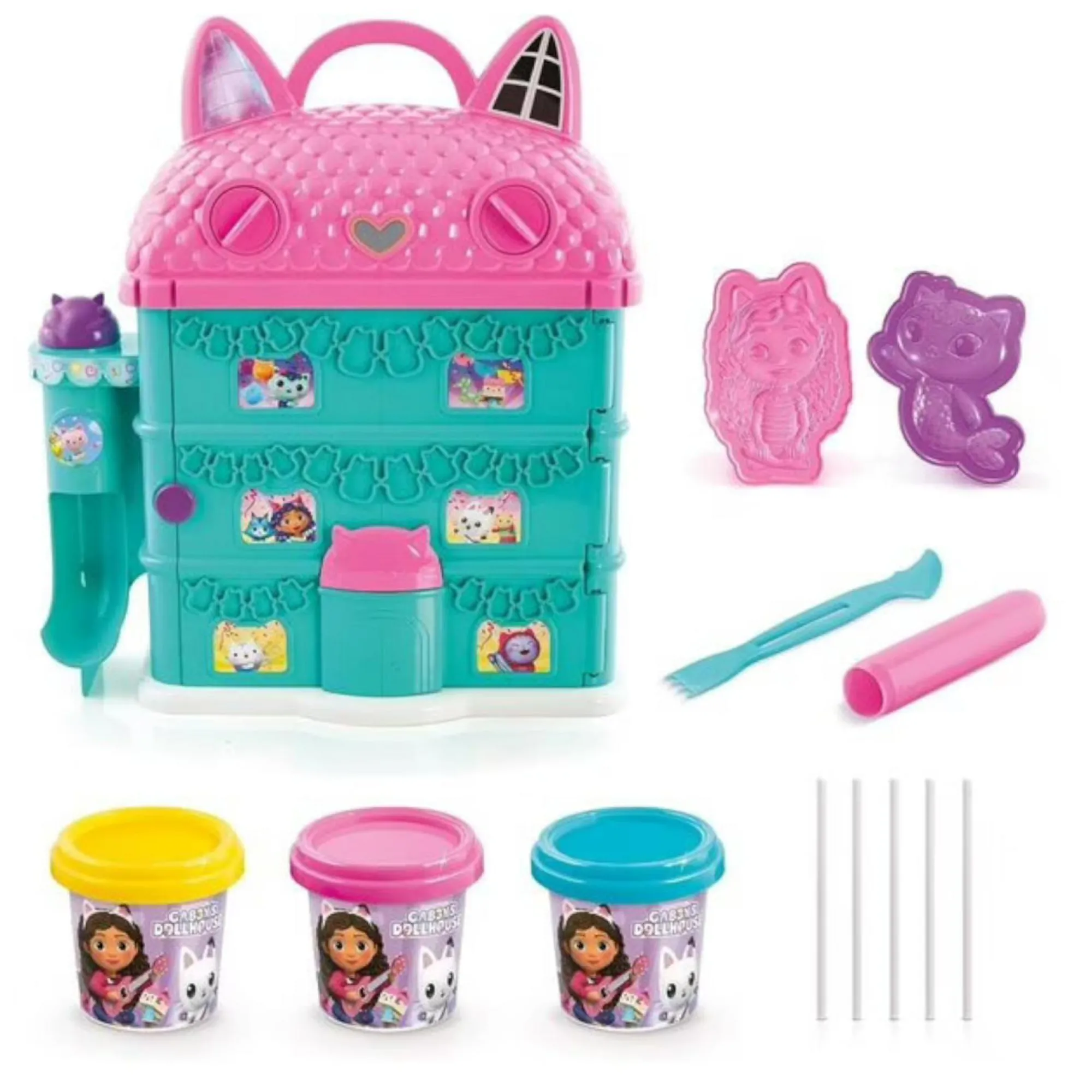 Set casa di Gabby con 3 vasetti di pasta modellabile da 60g + 6 in omaggio
