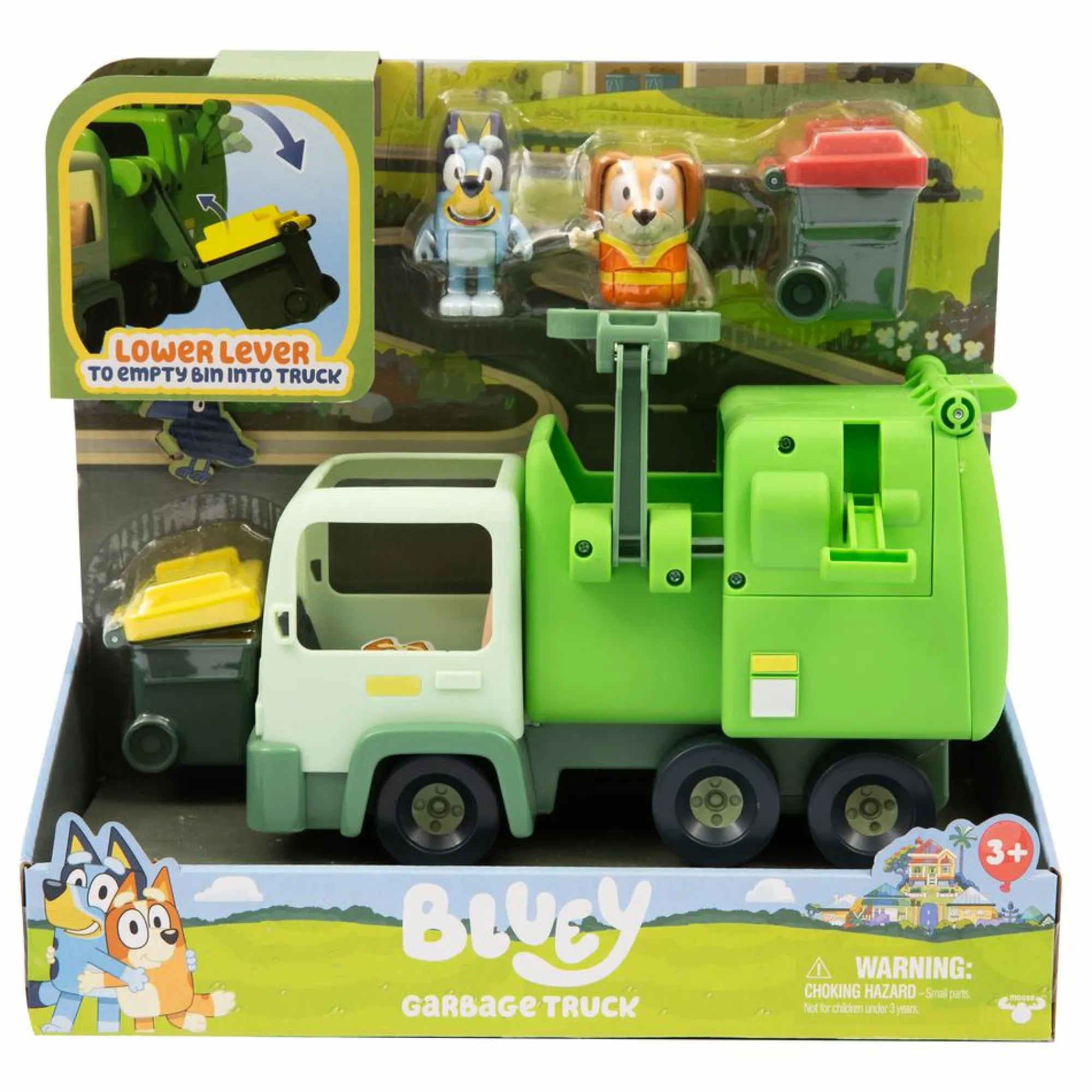 Basta guidare il camion della spazzatura fino ai bidoni e tirare la leva sul lato del camion per svuotare la spazzatura all’interno