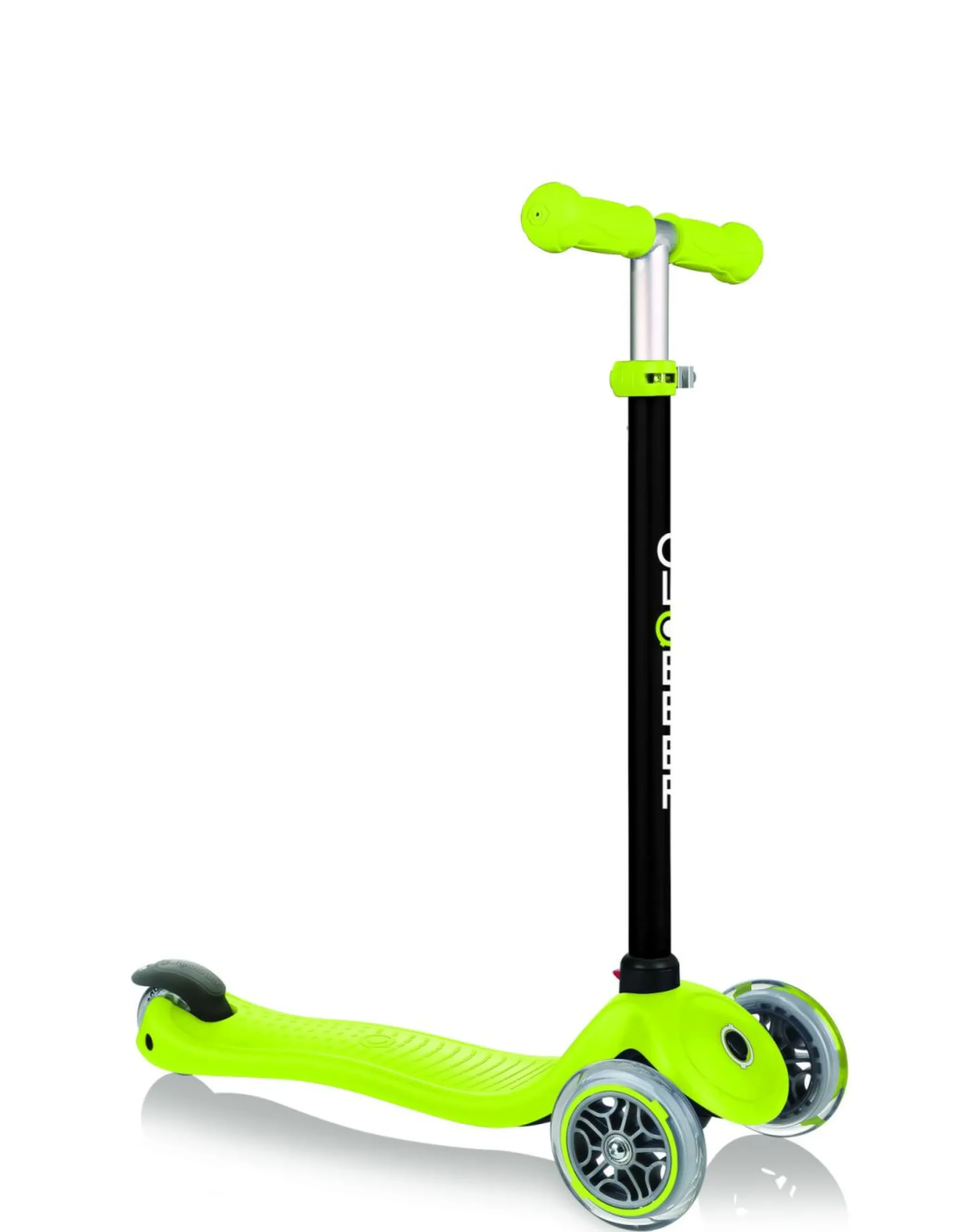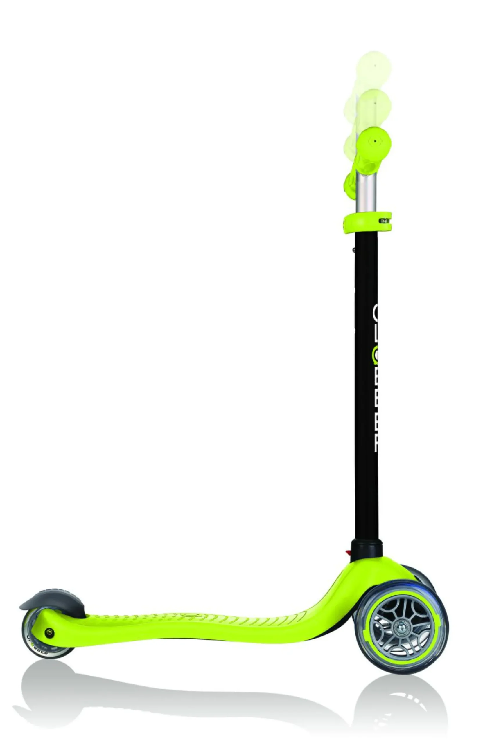 Il sistema di bloccaggio dello sterzo brevettato da Globber fissa le ruote anteriori in un movimento avanti e indietro, aiutando i bambini a imparare l’equilibrio. È sufficiente rilasciare il pulsante di blocco per consentire al bambino di sterzare liberamente quando è pronto.