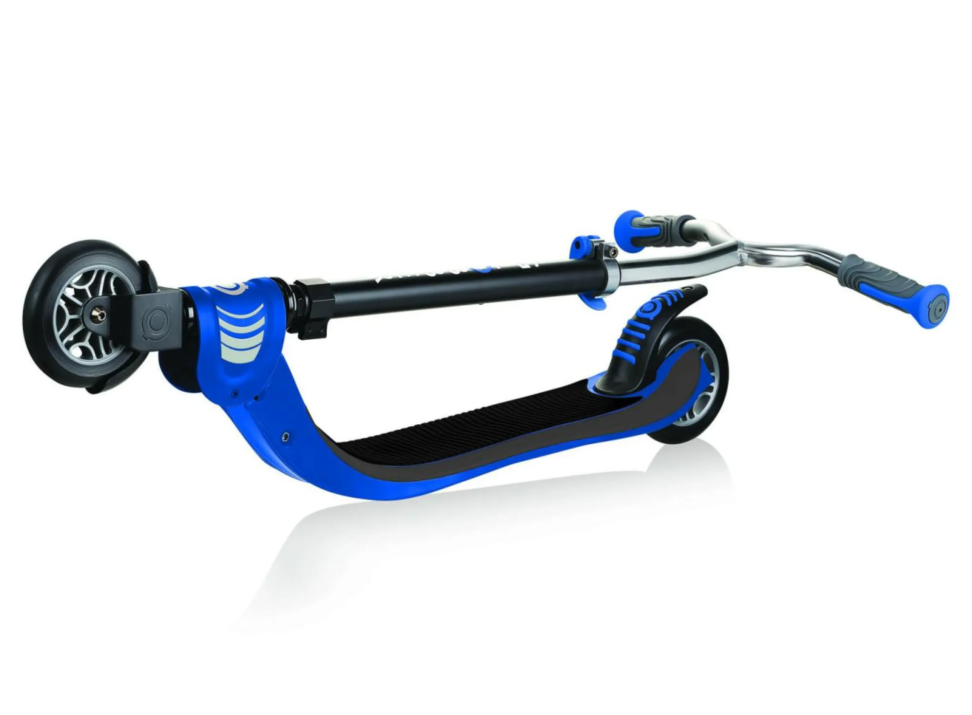 Monopattino pieghevole a 2 ruote per ragazzi con sistema di ripiegamento integrato Globber dotato di un pulsante sicuro e resistente. Il monopattino a 2 ruote può essere facilmente ripiegato e trasportato. È integrata anche la modalità autoportante brevettata: non è necessario il cavalletto!