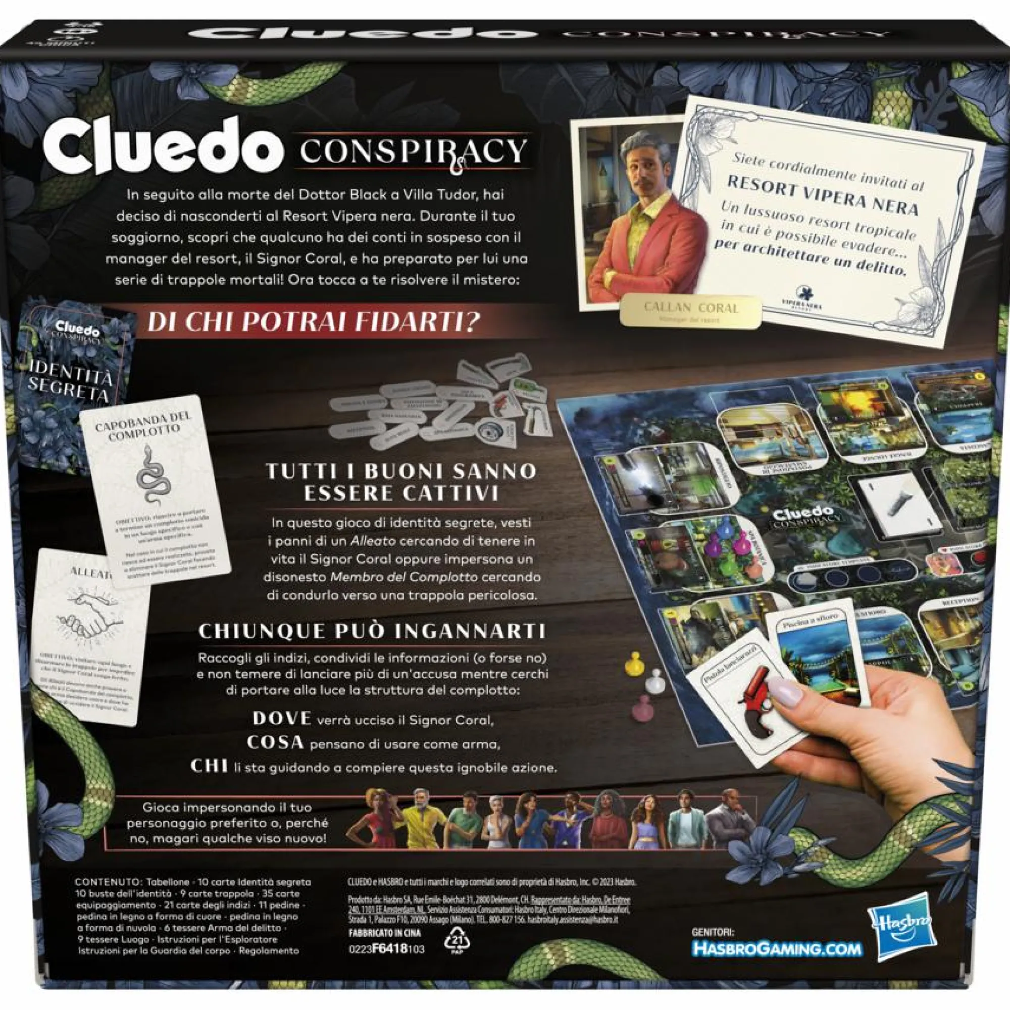 LA VERSIONE PER ADULTI DI CLUEDO CHE STAVI ASPETTANDO: menti ai tuoi amici e architetta il delitto perfetto! Il gioco da tavolo Cluedo Conspiracy è un gioco di strategia con identità segrete in cui tutti sono sospettati, ma con un’atmosfera festaiola! Dai 14 anni in su. Per 4-10 giocatori