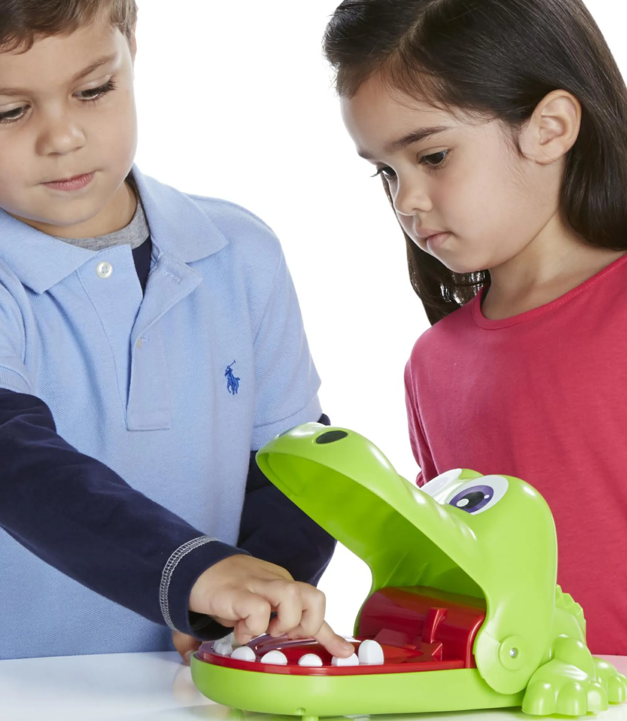 CONTROLLA I DENTI DEL COCCODRILLO: Il gioco del Cocco dentista sfida i bambini a stare attenti al dente dolorante del buffo coccodrillo. Quando premono su un dente, questo morde se si tratta di quello dolorante eliminando così il giocatore dal gioco