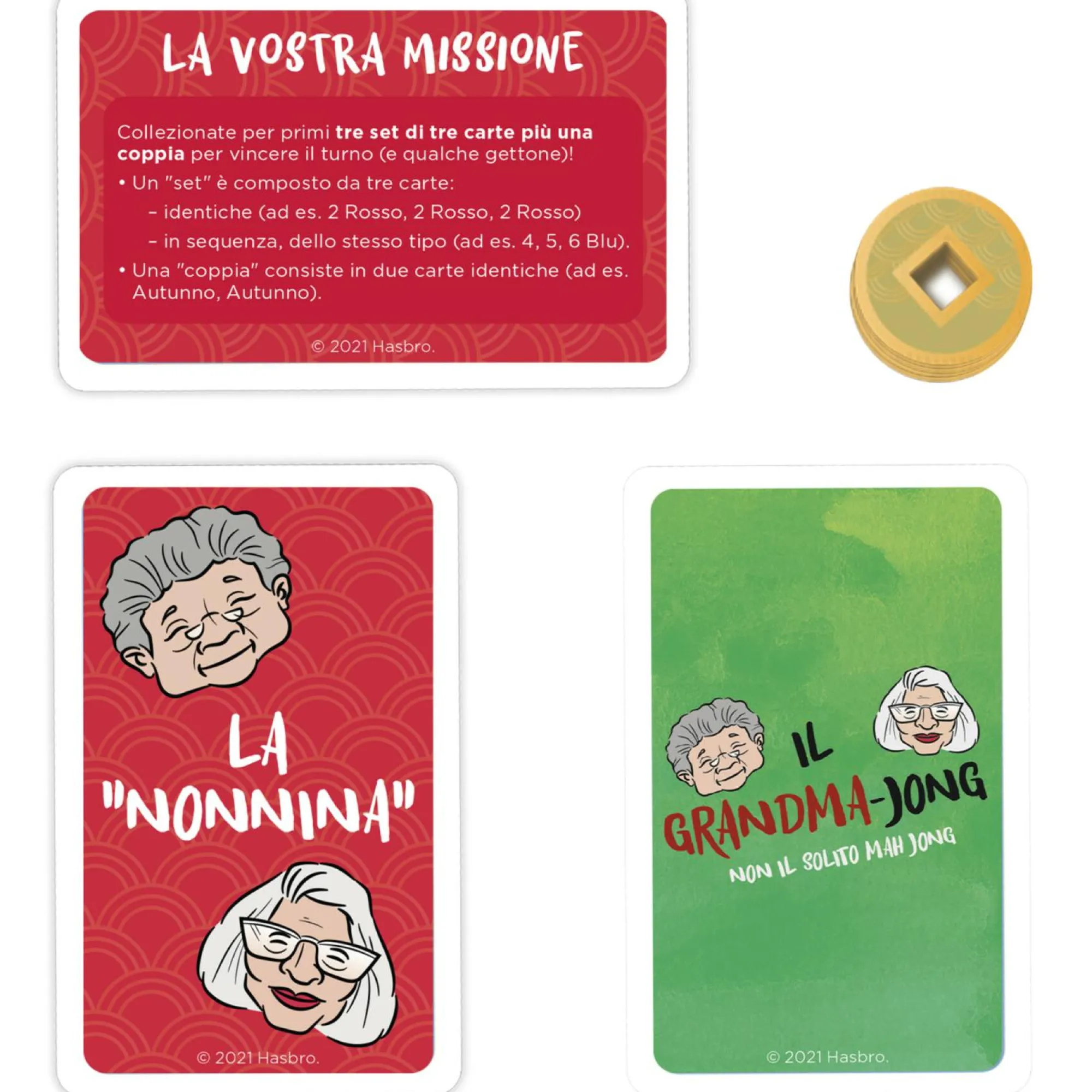 NUOVA VERSIONE DEL CLASSICO MAHJONG: il ritmo è incalzante, il gioco agguerrito, è Il Grandma-Jong! Questo gioco di carte per le feste richiede 3-4 giocatori, 10 carte e 10 gettoni. Preparati a rubare la strada verso la vittoria