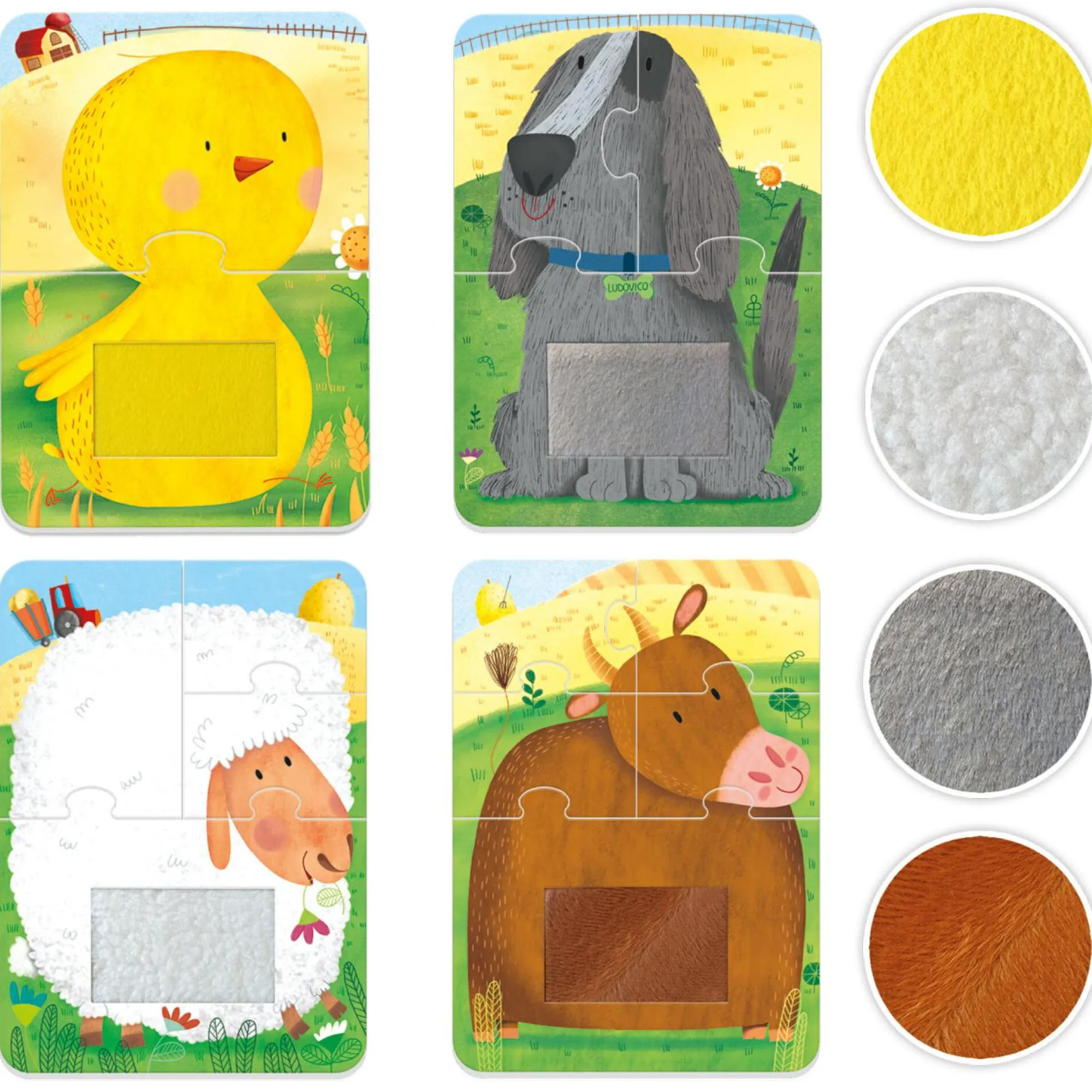 Sensibilità tattile; Riconoscere gli animali della Fattoria e le differenti texture dei manti; Prima seriazione; Coordinazione occhio-mano; Manualità fine