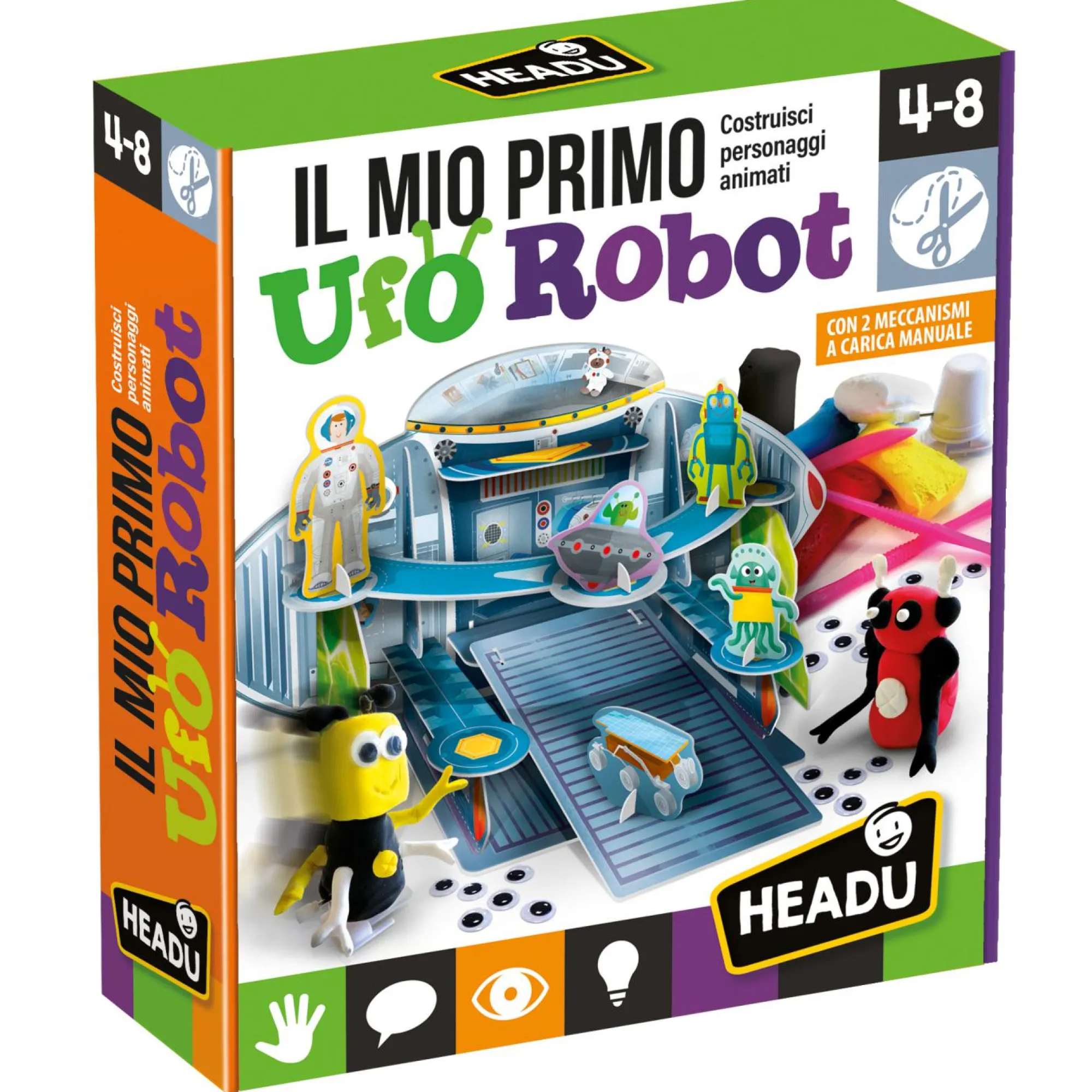 Navicella spaziale 3D da costruire; Soggetti sagomati; 2 meccanismi; 5 panetti di argilla; 3 attrezzi per modellare; 20 occhietti adesivi; Colla