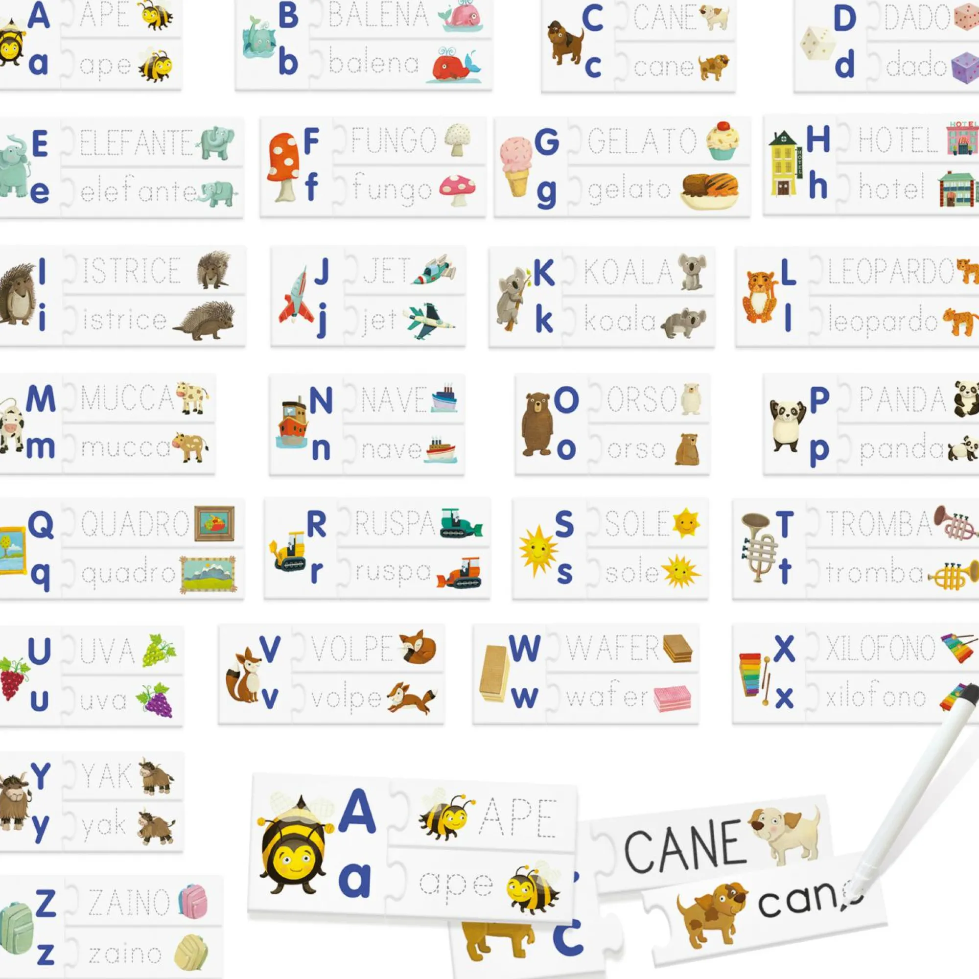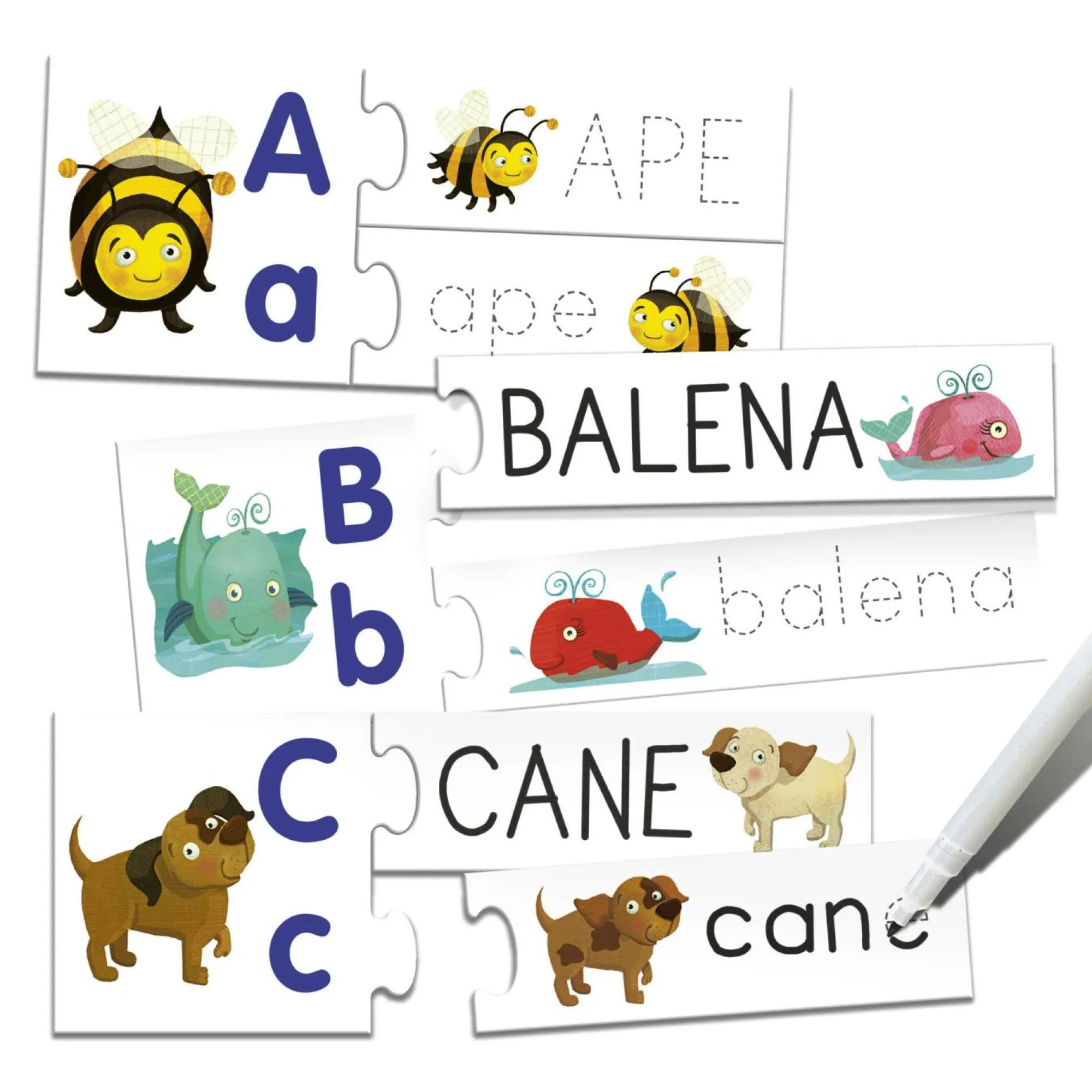 Prima scrittura e prima lettura • Riconoscimento delle lettere maiuscole e minuscole • Manualità fine e coordinazione occhio-mano