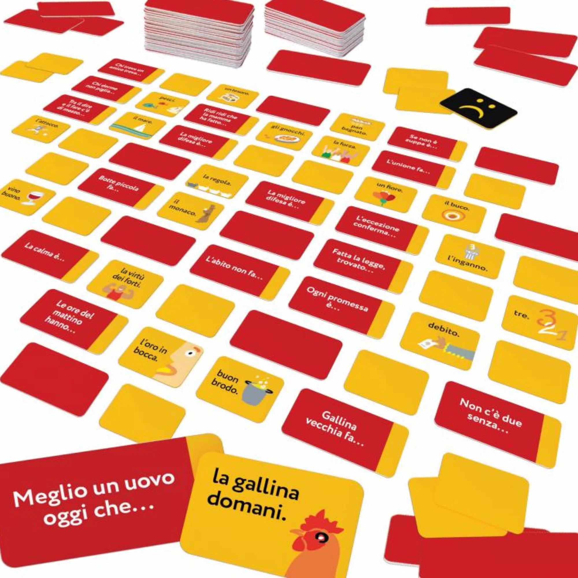32 cartine rosse; 32 cartine arancio; 1 cartina nera; Regolamento