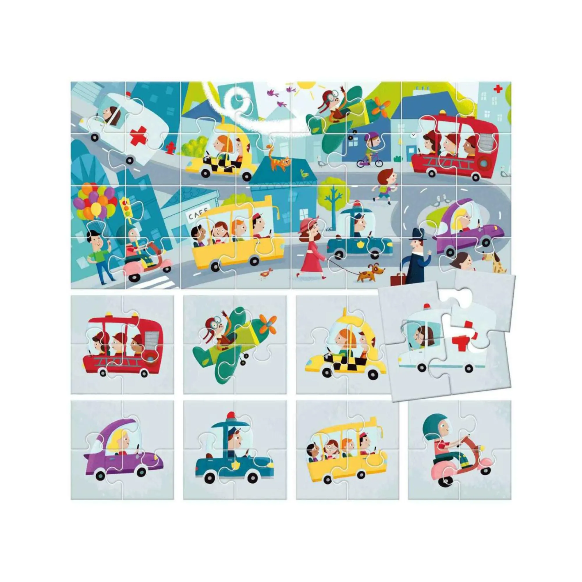 8 puzzle da 4 pezzi double face che ottengono una tavola della città 48 x 32,5 cm