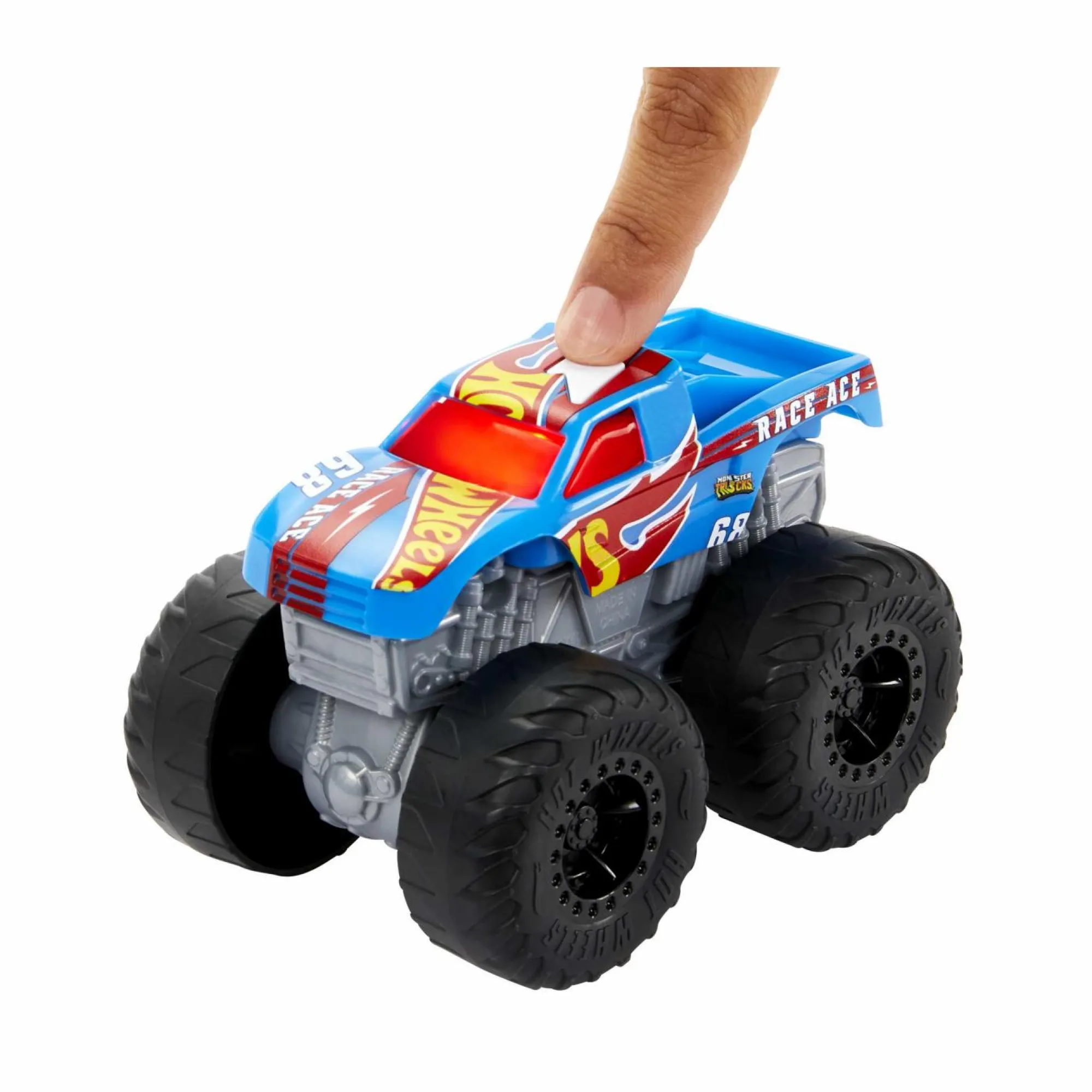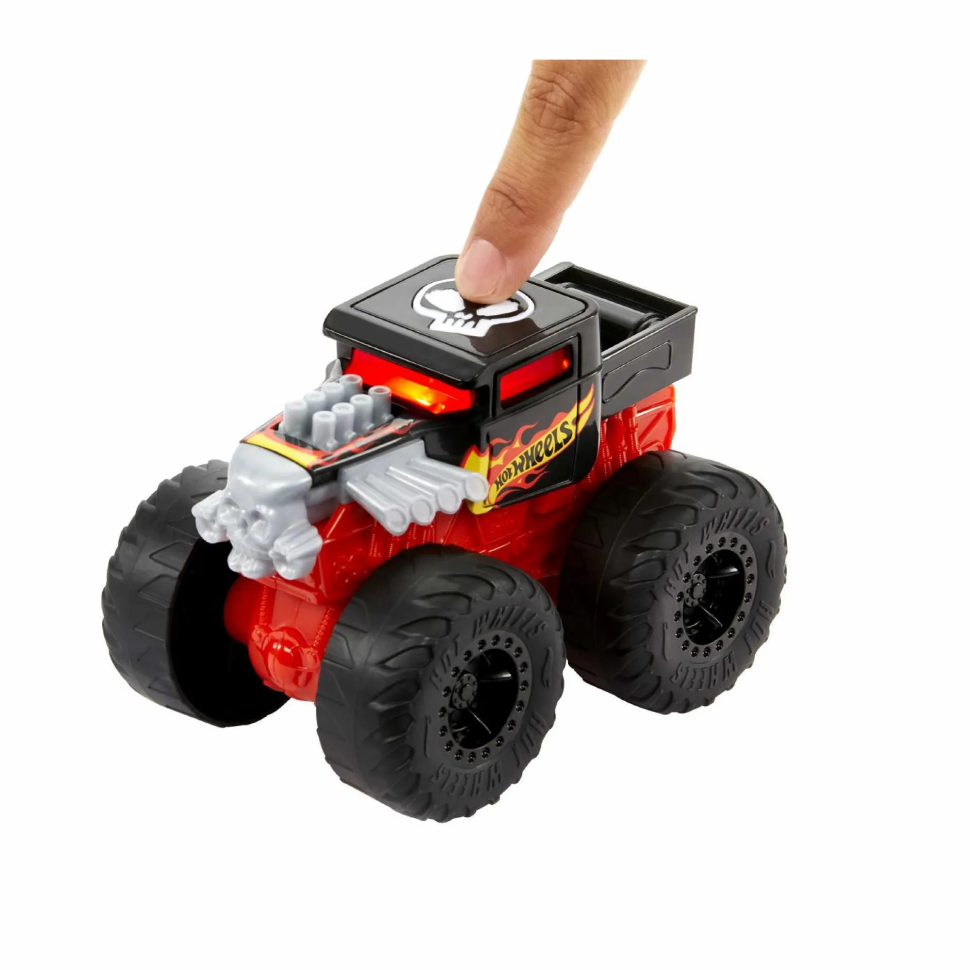 La collezione include Bone Shaker, Tiger Shark, HW Demo Derby e Race Ace (ognuno in vendita separatamente). Premi il pulsante e ascolta la canzone del tuo idolo, il rombo del motore e i suoni di schianto.
