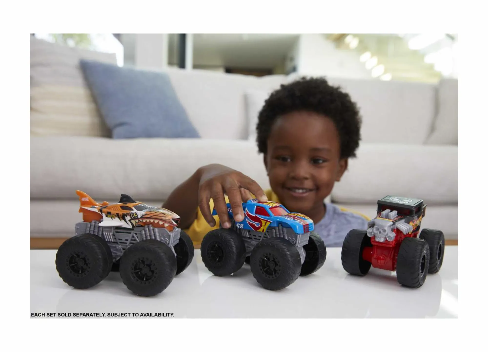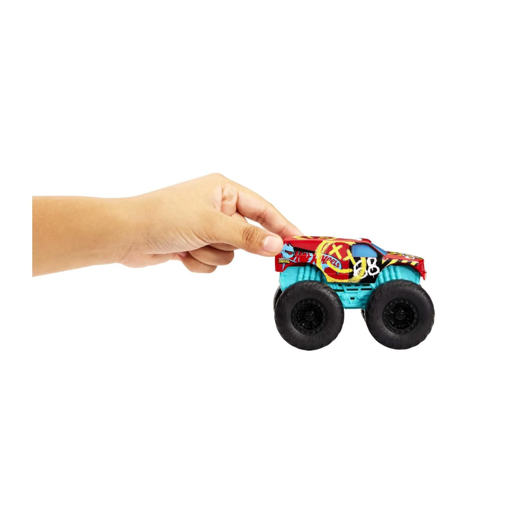 Vivi l’esperienza completa Hot Wheels Monster Trucks con gli amatissimi monster truck Demolitori Ruggenti che prendono vita con luci e suoni!